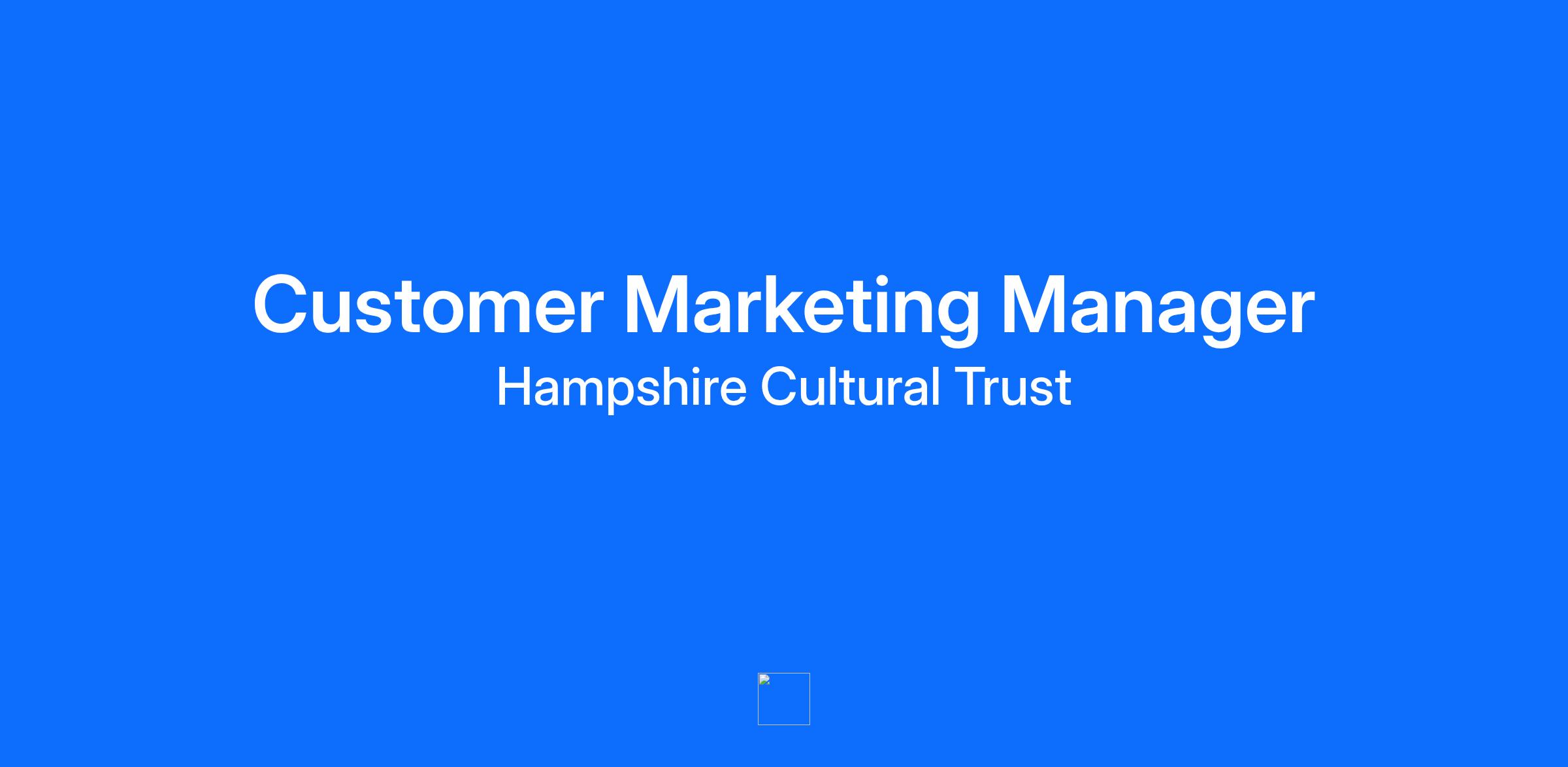 Job Title: Customer Marketing Manager Level: 3A Salary: £35,000 - £39,500 per annum dependent on skills and experience Location: Chilcomb Hours: 37 hours per week Type of Contract: Permanent Referral Category: A Job Description: Customer Marketing Manager Be the creative force behind a brand people recognise, remember and want to experience again. Reporting to the Head of Marketing, you’ll lead the delivery of our consumer brand, ensuring a distinctive, consistent, and high-quality experience from first click to visit and beyond. You’ll manage and optimise our websites and digital platforms, designing seamless, accessible customer journeys that drive engagement, ticket sales, donations, F&B and retail income. You’ll oversee high-quality content and design across digital, print, and on-site environments, embedding insight, analytics, and performance thinking to continually improve results. Working closely with venue and campaign teams, you’ll set clear brand standards while remaining hands-on with delivery, guidance, and creative direction. A bit about you You’ll be an experienced marketing manager with a strong track record in customer-focused, brand-led delivery. Confident working across multiple platforms and priorities, you’ll combine strategic thinking with practical execution. You’ll enjoy influencing stakeholders, mentoring colleagues, and using data to improve customer experience, engagement, and commercial performance. Who we are At Hampshire Cultural Trust we have a vision to create inspirational culture experiences that enrich and transform lives. We manage and support 20+ attractions and deliver county-wide outreach programmes that bring great culture to local communities. We also deliver a diverse range of wider social impact initiatives targeted at those who are most vulnerable or disadvantaged and who would not usually have access to arts and culture. We promote equity, inclusion and diversity and a culture that actively values difference. We recognise that people from different backgrounds and experiences can enhance the way we perform and work and we encourage and support the physical and mental health and wellbeing of all our staff. We are inclusive, valuing, and respectful of diversity, developing the ability to recruit and retain a diverse workforce that reflects the communities we serve. Therefore, we are committed to implementing reasonable adjustments for candidates with disabilities in our recruitment process and in employment. The benefits of working for us 25 days annual leave + bank holidays (pro-rated for part time working) 7.5% Employer pension contributions Generous occupational maternity, adoption and paternity pay Enhanced occupational sick pay Generous compassionate leave scheme Paid emergency leave Industry leading Employee Assistance Programme Access to same day GP appointments for employees and their immediate family Life assurance scheme (x3 annual salary) Interest-free Season ticket loans and travel loans from first day of employment Charity Worker Discounts Scheme (savings on retail, leisure, groceries, travel etc.) Access to free eye tests and vouchers towards glasses for VDU use Free flu vaccination vouchers Cycle to Work Scheme Health Cash Plan (cashback on dental, optical, medical for monthly subscription cost) Opportunities to learn, develop and progress Free tea and coffee Team Card - Free access to venues for friends and family, and discounts across café and retail. We will be running a dynamic recruitment process so we would encourage candidates to submit an application as soon as possible as we will be interviewing candidates before the closing date. To apply please fill in the application form with an up-to-date CV. We request a covering letter for this position around your context for applying and why you would excel in the position. Closing date for applications: 18 January 2026 To find out more about us visit our website www.hampshireculture.org.uk and https://careers.hampshireculturaltrust.org.uk/