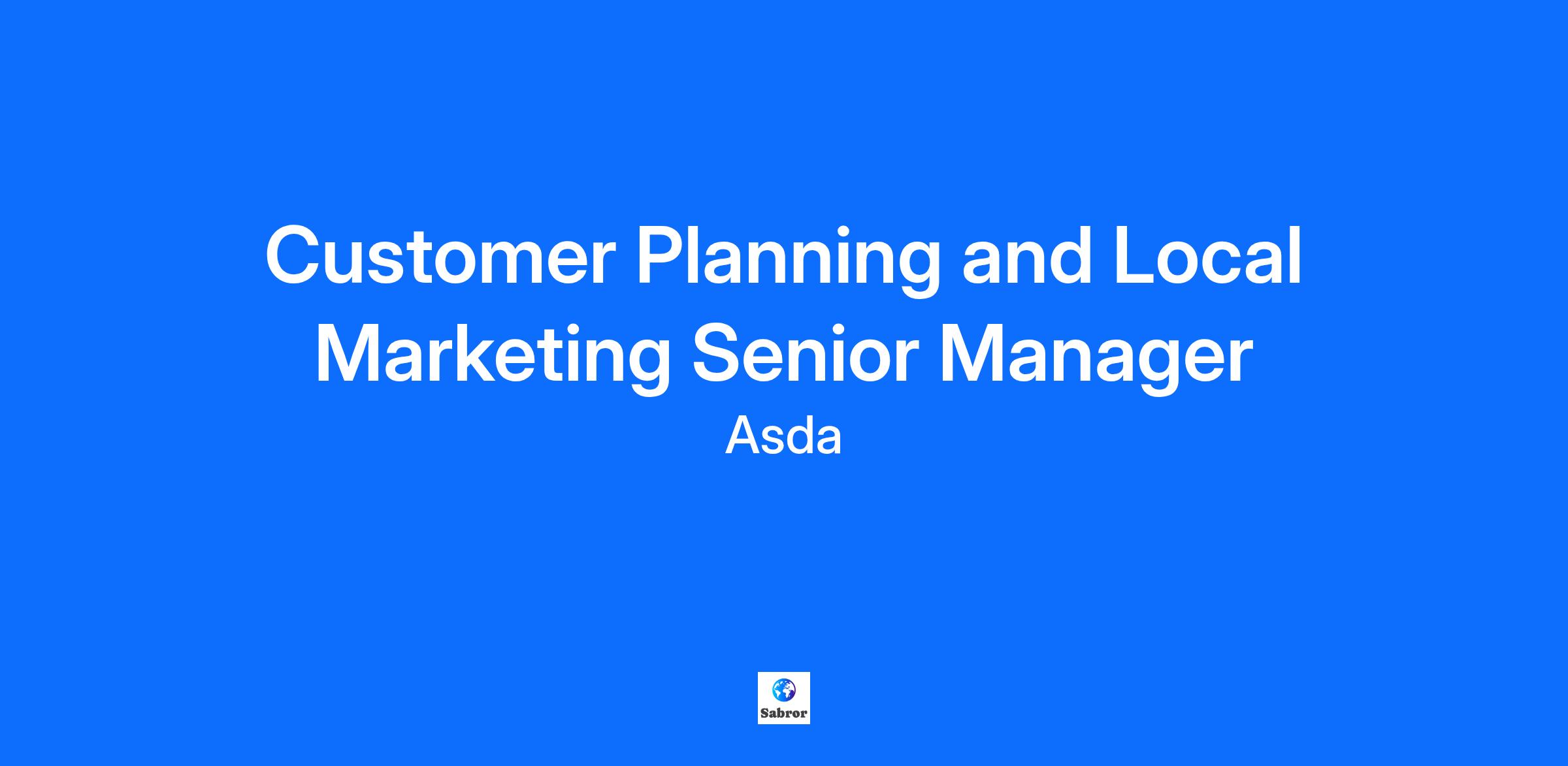 Job Title Customer Planning and Local Marketing Senior Manager Location Asda House Employment Type Full time Contract Type Permanent Hours per Week 37.5 Salary Competitive Salary plus benefits Category Market Research Closing Date 11 December 2025 The Customer Planning and Local Marketing Senior Manager leads the creation and improvement of customer plans that guide key events and campaigns, giving people reasons to shop at Asda while meeting business goals. They make sure customer insights shape decisions across marketing, retail, online, and commercial teams so that all customer-facing activity matches business priorities, delivers a consistent brand experience, and boosts engagement and sales across food and non-food. They also manage local marketing to support stores during refits and protect sales when new competitors open nearby. Your Role Customer Planning Lead customer planning by turning insights into clear marketing and commercial plans, ensuring Asda and George stay customer‑focused and consistent. Work with Category, Trade Planning, Marketing, and Operations to set priorities that drive sales, footfall, satisfaction, brand health, and market share. Manage the annual and quarterly customer calendar, aligning marketing, trading events, and local activity. Oversee weekly plan reviews, making sure changes are aligned with goals, prioritized, and communicated clearly. Ensure all stakeholders are kept informed about what’s happening and when. Local Marketing Lead local marketing strategy to build relevance, engagement, and loyalty in regional markets. Protect store sales during refits and competitor openings, and improve performance in priority store groups. Work with Retail Operations to provide stores with toolkits, guidance, and support. Run governance forums to track activity and measure impact. Adapt national campaigns or create tailored local activity for specific markets and demographics. Assess effectiveness to focus investment on activities that deliver the strongest sales results. About You Lead, inspire, and develop a team of customer planners to deliver best-in-class customer plans Act as a key business partner to senior stakeholders across Marketing, Food and Non-Food Commercial, Retail, GHS and Finance. Foster a culture of customer obsession, collaboration, and accountability. Significant experience in customer planning, local marketing, or commercial strategy within a large retail or FMCG environment. Strong understanding of retail operations and how marketing activity drives sales and customer engagement. Proven ability to turn customer insight into actionable commercial plans. Experience leading cross-functional planning processes. Excellent stakeholder and communication skills. Excellent influencer Strong analytical and problem-solving ability; comfortable with data-led decision-making. Team leadership experience within a fast-paced, matrix organization Exceptional organizational skills and proven ability to lead and implement effective governance processes across cross-functional teams #LI-JC1 Everything you'll love To ensure we balance moments where we know we need to collaborate together and the need for flexibility, Asda has a hybrid way of working with a minimum 3 days a week in one of our Home Offices. Over and above this, each area of Asda may have additional requirements which may require spending more days in the office, visiting suppliers, stores or depots. You will also get an excellent benefits package including: Discretionary company bonus Company pension up 1.5 times colleagues' contribution (Max 15%) Company Car allowance of £8000 15% colleague discount in store and online Free access to wellbeing services such as Stream, 24/7 virtual GP, counselling, health and dental cash plans and a 24/7 employee assistance helpline, alongside discounts across a range of services and activities, from airport parking, enhanced to theme parks and cinemas. Asda Allies Inclusion Networks – helping colleagues to make sure everybody is included and that our differences are recognised and celebrated Excellent parental leave policies, including maternity & adoption leave, paternity leave, shared parental leave, neonatal care leave, and support for those doing fertility treatments. We want all colleagues to be able to bring their best and true selves to work, every day. Simply put, we want our colleagues to be Proud to be Asda and proud to be themselves Asda is Reimagining Retail It’s hard for anyone to imagine how many different career possibilities there are at Asda. Ours is a big business, and beyond the roles you might be familiar with there are hundreds more you don’t often get to see. In fact, because our business is changing we're creating new roles all the time! So take the time to look around. Once you’ve had the chance to explore our current open positions, apply to the ones you feel suit you best. And don't forget you can keep an eye on new positions and check how your current applications are progressing by visiting regularly.