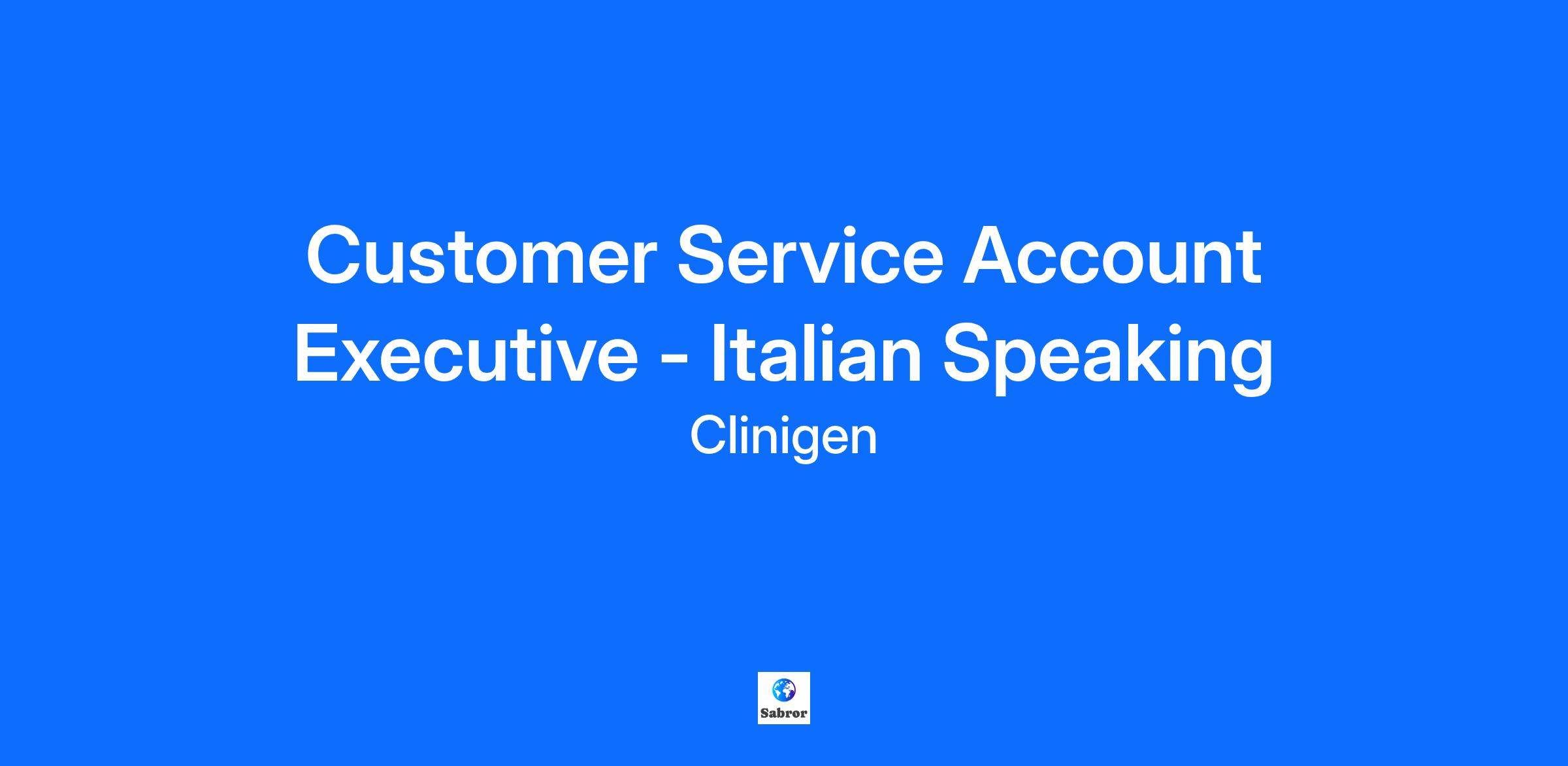 Customer Service Account Executive - Italian Speaking