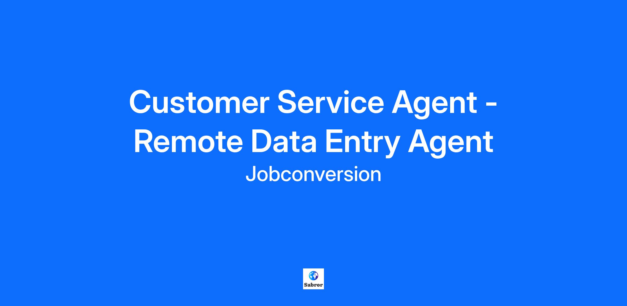 Customer Service Agent - Remote Data Entry Agent