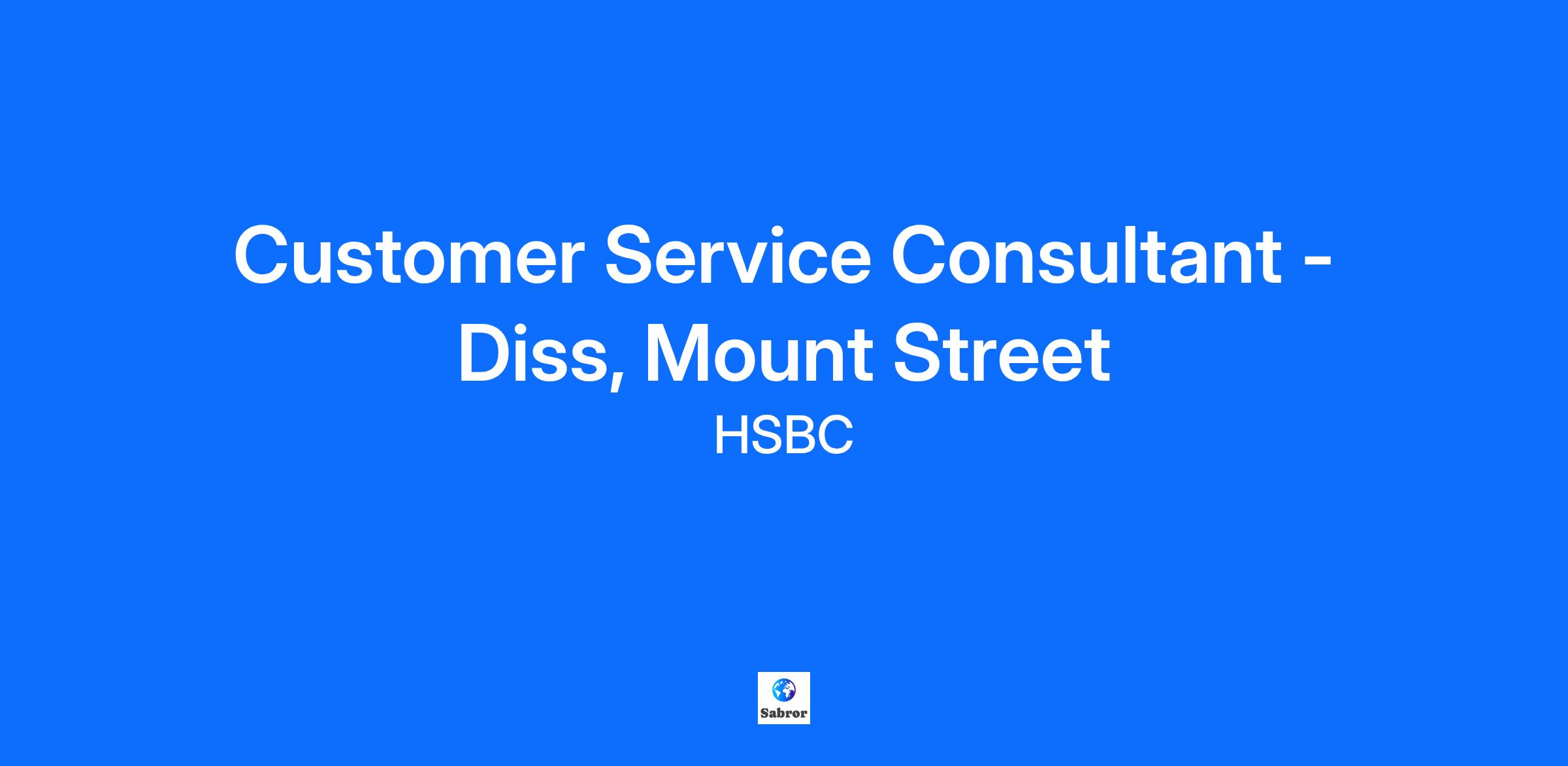 Customer Service Consultant - Diss, Mount Street
