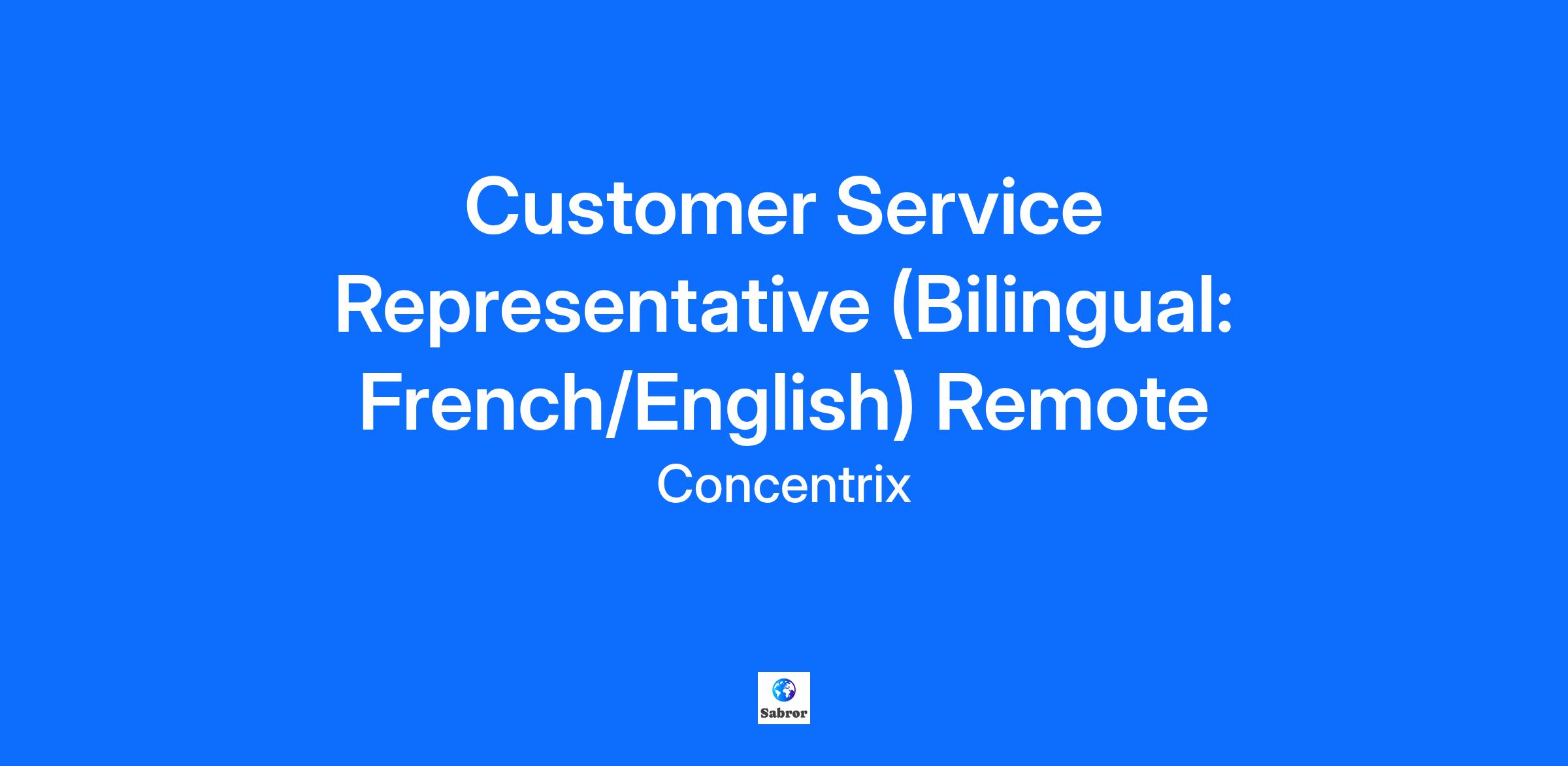 Customer Service Representative (Bilingual: French/English) RemoteJob Description