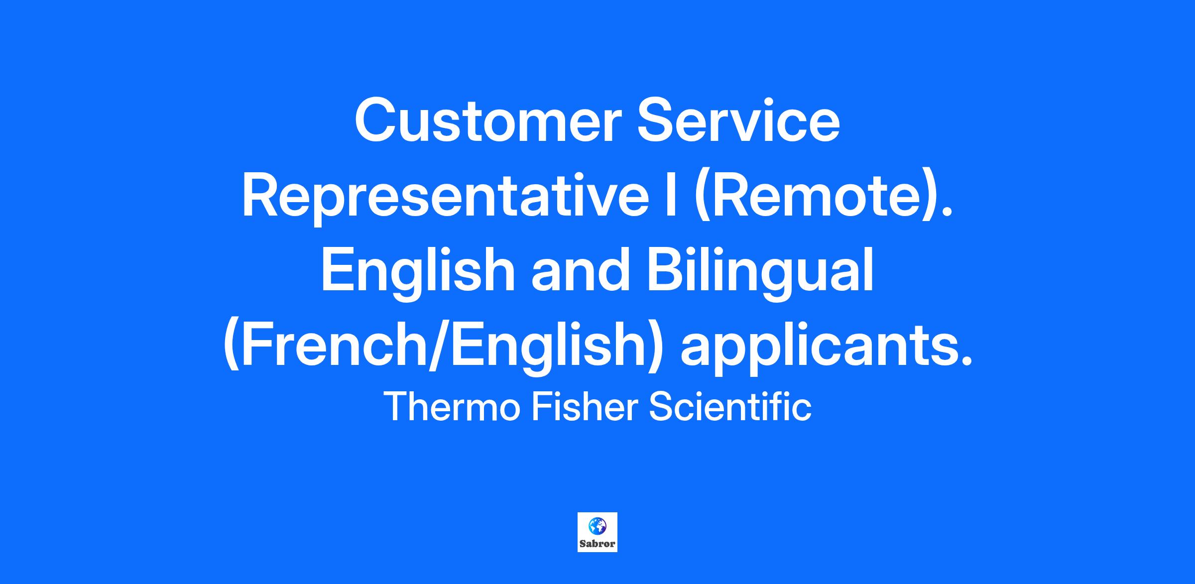 Title: Customer Service Representative I (Remote). We are seeking English and Bilingual (French/English) applicants.