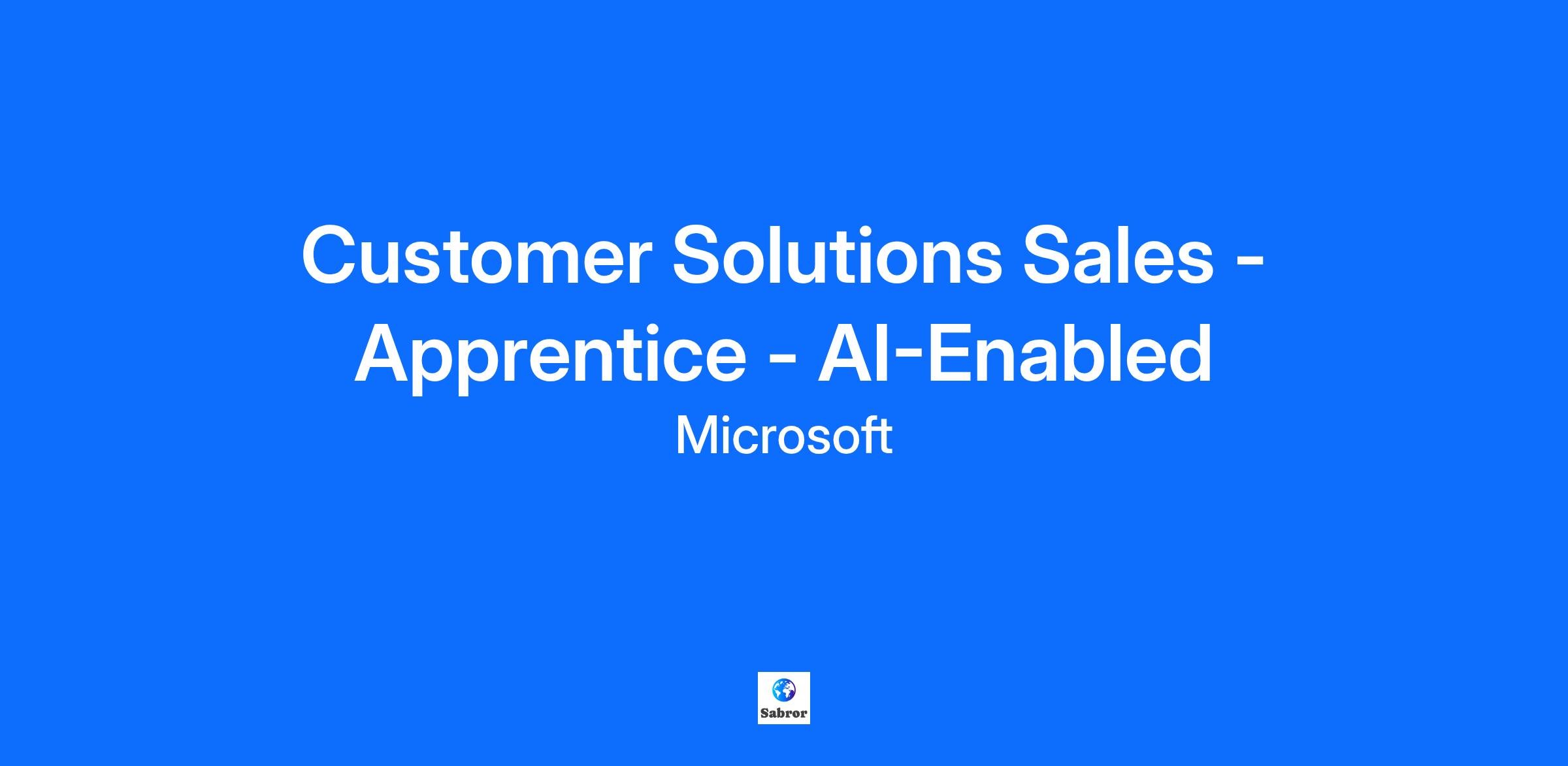 Overview Location: London Duration: 3 years 6 months Salary: £25,200 per year Opportunities: multiple spots available for future changemakers Being a Microsoft Apprentice Ready to kick-start your career and make an impact? As a Microsoft Apprentice, you’ll earn while you learn, build real-world skills, and work on projects that matter from day one. No coffee runs here—you’ll have a full employment contract and a seat at the table, shaping ideas that drive change. And here’s the exciting part: you’ll dive into AI innovation and see how a frontier firm like Microsoft is rewriting the future. Think generative AI, automation, and tech that’s transforming industries—this is your chance to learn from the best, experiment with cutting-edge tools, and create solutions that make a global difference. Bring your passion for solutions, people, and technology to life. Join Microsoft as an Apprentice and help create innovations that empower every person and every organisation on the planet. Your journey starts now—apply today! You’ll work alongside dynamic teams in Enterprise Commercial or Public Sector, learning how big deals happen and how tech transforms industries. Join us as a Customer Solutions Apprentice and become part of a team that’s transforming how businesses connect. This isn’t about cold calls and spreadsheets – it’s about using AI tools, data insights, and digital platforms to make every interaction smarter, faster, and more personal. You’ll learn the art of consultative selling while mastering next-gen tech that helps you predict trends, craft killer proposals, and keep customers smiling. Think of yourself as the bridge between innovation and relationships – supporting senior sales pros, collaborating with marketing, and experimenting with AI-driven strategies that make deals happen. About the Teams Enterprise Commercial focuses on large corporate customers, driving digital transformation and strategic partnerships. Public Sector works with government, healthcare, and education organisations to deliver technology solutions that improve services and empower communities. Programme Details Duration: 3.5 years Qualification: Level 6 Degree Apprenticeship (BSc Professional Practice in B2B Sales) Study Mode: Blended learning (work-based + university modules) Includes AI-Fueled Selling Capstone and AI Sales License certifications Why You’ll Love It Earn while you learn Gain a recognised degree Work with cutting-edge AI tools Build a career in a future-proof industry Responsibilities Support Sales Teams: Assist with account planning, proposals, and customer engagement using AI-powered tools. Leverage AI Insights: Use predictive analytics and generative AI to personalise outreach and optimise sales processes. Collaborate Across Teams: Work with marketing, technical specialists, and partners to deliver integrated solutions. Learn & Grow: Dedicate time to structured learning, including modules on AI fundamentals, ethical AI use, and consultative selling. Qualifications Curiosity and a passion for tech Strong communication and problem-solving skills A growth mindset and willingness to learn Interest in AI and digital tools for business This position will be open for a minimum of 5 days, with applications accepted on an ongoing basis until the position is filled. Microsoft is an equal opportunity employer. All qualified applicants will receive consideration for employment without regard to age, ancestry, citizenship, color, family or medical care leave, gender identity or expression, genetic information, immigration status, marital status, medical condition, national origin, physical or mental disability, political affiliation, protected veteran or military status, race, ethnicity, religion, sex (including pregnancy), sexual orientation, or any other characteristic protected by applicable local laws, regulations and ordinances. If you need assistance with religious accommodations and/or a reasonable accommodation due to a disability during the application process, read more about requesting accommodations.