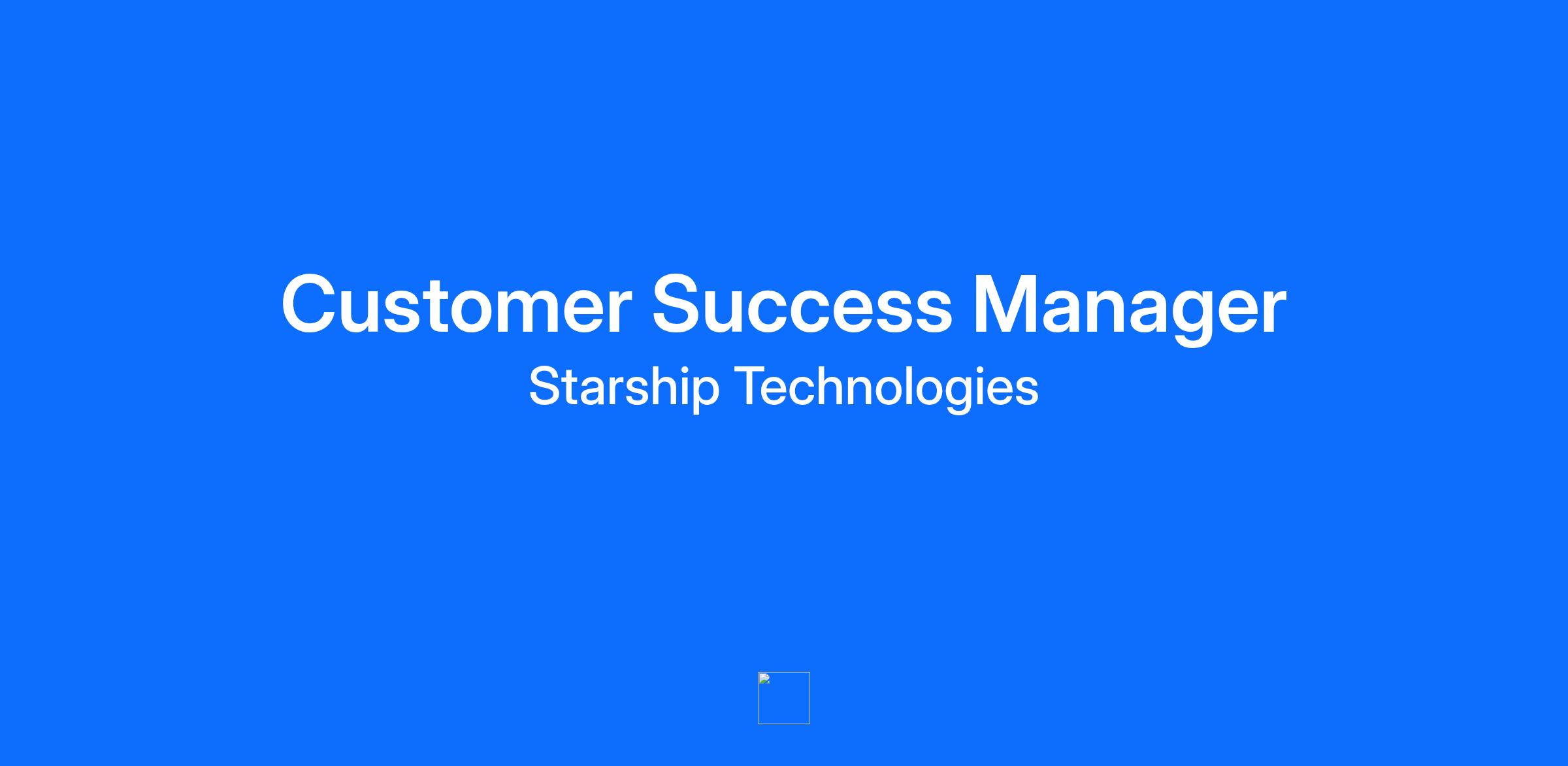 Starship Technologies is revolutionizing deliveries with autonomous robots. These robots are designed to deliver food, groceries, and packages across college campuses and neighborhoods in minutes. Starship has now completed millions of autonomous deliveries to date, traveled millions of miles, and is currently doing more than 140k road crossings each day. Our contribution to society includes reducing congestion, and pollution, providing zero-emissions deliveries, increasing the quality of life for residents, empowering seniors and disabled people, and enabling affordable delivery for local businesses. We’re hitting records on an almost weekly basis. Now is an exciting time to join as we grow rapidly around the world! We are seeking a commercially focused Customer Success Manager to join our high-performance Customer Success team in the UK. In this role, you will own strategic accounts, driving sustained revenue expansion while establishing yourself as the indispensable C-suite advisor. You will be responsible for navigating complex client organizations, building trusted relationships with key decision-makers, and turning strategic customer intelligence into significant revenue growth. You have exceptional commercial vision, a commanding presence in executive meetings, and the unwavering drive to exceed ambitious business targets. Your main responsibilities are: Relentlessly pursuing and securing expansion opportunities through strategic value positioning and competitive account engagement Articulating compelling ROI narratives and business cases that command C-suite attention and drive strategic decision-making Strategically building personal brand within client organizations as the go-to quick commerce & autonomous technology expert and value catalyst Navigating complex organizational politics to identify and cultivate key power brokers and decision influencers across all levels Creating aggressive expansion roadmaps that align customer strategic initiatives with our commercial objectives Leveraging deep customer intelligence to drive expansion initiatives across product and operations while leading cross-functional alignment to transform insights into actionable revenue opportunities and competitive advantages Proactively identifying and eliminating churn risks while maximizing every expansion and cross-sell opportunity What’s in it for you? Opportunity to collaborate with highly motivated people who value feedback and continuous improvement Be part of a fast-growing scale-up with significant opportunities for career progression See the direct impact of your contribution on both customer outcomes and company growth Learn from inspirational, talented colleagues across the globe What we hope you’ll bring to the table: Minimum 3 years of driving growth within strategic accounts in commercial Customer Success, strategic sales, or consulting, with a proven track record of crushing expansion targets Proven experience transforming customer insights directly into strategic advantages and expansion opportunities Fluency in English, additional languages are a plus Exceptional ability to read organisational dynamics, navigate complex hierarchies, and identify key power brokers while establishing strategic footholds Demonstrated strong commercial instincts and relentless pursuit of strategic growth opportunities Advanced analytics skills and proven expertise in developing compelling, data-backed business cases that clearly articulate ROI and drive rapid executive action Want to learn more about our robots and our people? Get in touch and let’s have a chat! Also, have a sneak peek to our blog and discover more about us!