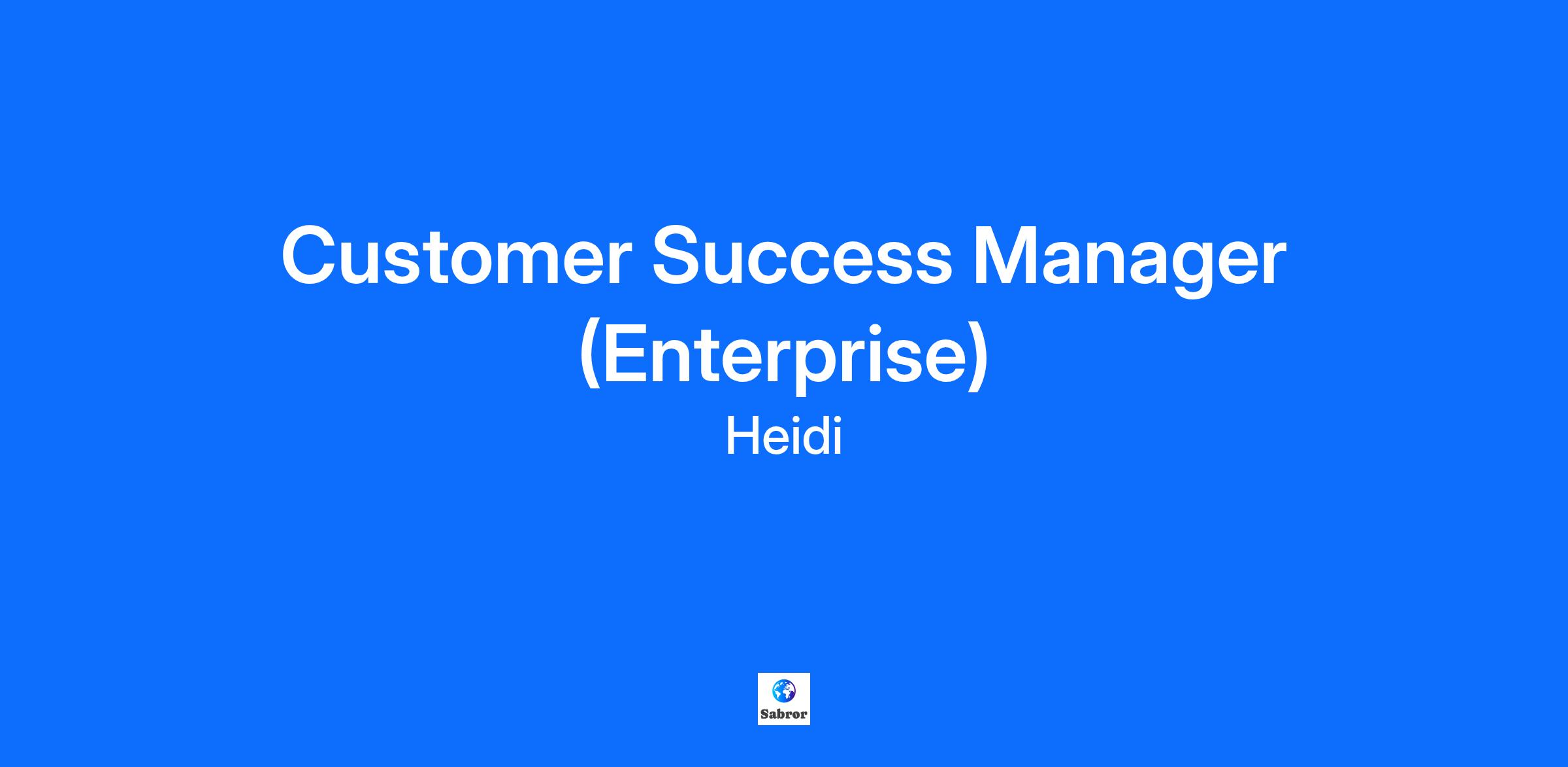 Who is Heidi? Heidi is building an AI Care Partner that supports clinicians every step of the way, from documentation to delivery of care. We exist to double healthcare’s capacity while keeping care deeply human. In 18 months, Heidi has returned more than 18 million hours to clinicians and supported over 73 million patient visits. Today, more than two million patient visits each week are powered by Heidi across 116 countries and over 110 languages. Founded by clinicians, Heidi brings together clinicians, engineers, designers, scientists, creatives, and mathematicians, working with a shared purpose: to strengthen the human connection at the heart of healthcare. Backed by nearly $100 million in total funding, Heidi is expanding across the USA, UK, Canada, and Europe, partnering with major health systems including the NHS, Beth Israel Lahey Health, MaineGeneral, and Monash Health, among others. We move quickly where it matters and stay grounded in what’s proven, shaping healthcare’s next era. Ready for the challenge? The Role As an Enterprise Customer Success Manager at Heidi, you’ll own the end to end customer experience across diverse customer segments, helping clinicians adopt and love Heidi. You’ll be the strategic partner for a portfolio of Heidi’s largest enterprise customers, and will be accountable for their long-term success with Heidi. You’ll shape the customer journey from success design through implementation to ongoing value realisation, building trusted relationships with executives and clinical leaders to ensure Heidi delivers measurable outcomes, sustained adoption, and lasting impact across clinical teams. What you’ll do: Lead enterprise deployments Engage early in the customer journey to shape rollout and pilot strategies, ensuring every deployment is set up for success. Lead the onboarding of new customers from planning, training through to go-live, delivering seamless integrations into customer workflows. Lead cross-functional collaboration within Heidi and with key customer stakeholders from executives to clinical and technical leaders to deliver smooth implementations, strong clinician adoption, and measurable outcomes. Translate strategy into execution, guiding teams to achieve results quickly and sustain them at scale. Drive change management Support organisations through significant workflow transformation by leading planning, communication, training, and reinforcement that give clinicians and executives confidence in adopting new ways of working. Partner for ongoing success Build trusted, long-term relationships with executives, clinicians, and operational leaders to ensure sustained value well beyond go-live. Engage with intention to demonstrate impact and expand Heidi’s value across the health system, contributing to our mission of doubling healthcare’s capacity. Deliver value at every touchpoint through proactive check-ins, success planning, and education strategies. Think and act strategically to scale your impact. Use data to drive decisions Interpret and operationalise customer insights to design and execute initiatives that improve clinician engagement and satisfaction. Use data to proactively manage risk and identify opportunities for expansion and advocacy. Track and improve metrics along the customer journey like time-to-first-value and early activation. Develop and execute tailored adoption plans to maximise user engagement and satisfaction, enhancing the continued love for Heidi among clinicians. Communicate and collaborate Communicate, present, and influence effectively at all levels, from executives to frontline clinicians, showing a genuine commitment to improving healthcare outcomes and supporting those who deliver care. Champion customer success Focus on what truly matters to clinicians and health leaders — improving care, enhancing patient outcomes, and making clinicians’ working lives easier. Combine deep product expertise with empathy to solve relentlessly for their success, knowing that when they thrive, healthcare does too. Become the voice of the customer internally, advocating for their needs and priorities and showcasing wins. Stay ahead of health-system trends Be relentlessly curious about how healthcare is changing. Anticipate what’s next, from digital health innovation to hospital operations and clinician workflows, and turn that insight into strategies that drive adoption and deliver measurable outcomes. Scale success Bring expertise, curiosity, and good judgement to how we grow. Shape the frameworks, tools, and ways of working that turn complex, multi-thousand clinician deployments into scalable, high-impact rollouts. Earn trust, prove value, and embed Heidi as a critical partner in every health system’s long-term success. Gather and share insights to influence product development and feature prioritisation. Improve Process & Playbook development to refine and scale customer success playbooks, frameworks and collateral. Partner across Product, Sales, Support and Engineering teams to share insights and streamline implementation processes What we look for 5+ years of experience in a Customer Success role at a SaaS company, with a proven track record of owning the full customer lifecycle. Healthcare experience or familiarity with clinical workflows is preffered Exceptional communicator who can build trust with clinicians, administrators, and cross-functional teams alike. Highly organized and detail-oriented, ability to manage multiple projects and competing priorities without compromising quality. Self-starter with a bias for action, comfortable navigating fast-paced, ambiguous environments. Mission-driven, motivated by reducing clinician burden and improving patient outcomes through thoughtful, intelligent technology. Influential and credible, able to align executives, clinicians, and IT leaders around shared goals and drive measurable outcomes. Proven impact in driving genuine adoption and lasting behavior ch