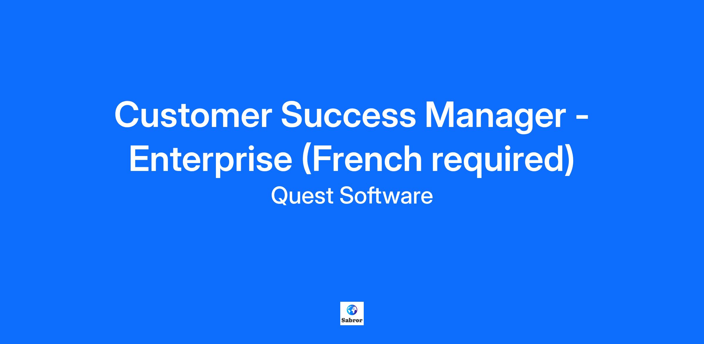 Overview Quest Software has a two-pronged mission focused on helping organizations manage and secure their Microsoft environments and leverage their data effectively. First, Quest aims to be the leading partner for modernizing, protecting, and securing hybrid Active Directory, Entra ID, and Microsoft 365 environments. They provide critical solutions for cybersecurity resilience, risk management, disaster recovery, and migration. This helps global organizations pursue digital transformation in the cloud while still safeguarding their on-premise Active Directory investments. Second, Quest is dedicated to helping customers unlock value from all their data through AI and data solutions. Their goal is to de-risk AI adoption and maximize data return on investment by offering integrated capabilities across the data management lifecycle, including metadata management, data operations, and infrastructure solutions. This empowers data and IT leadership to accelerate their data and AI initiatives. Role Summary The Customer Success Organization focuses on our most strategic customers. As an Enterprise Customer Success Manager at Quest, you'll play a pivotal role in ensuring these customers realize maximum value from their investments through comprehensive adoption and value engagements. The CSM will manage a portfolio of accounts and lead engagement throughout the customer lifecycle—from deployment and adoption through value realization and renewal—ensuring satisfaction and long-term success. You’ll leverage your expertise to guide customers through their journey, maintain consistent engagement, and ensure they achieve their goals and derive measurable value from Quest solutions. You’ll also surface Customer Success Qualified Leads (CSQLs) and coordinate with Account Management for follow-up. CSMs support renewal contracting processes and are expected to stay informed on Quest’s evolving product portfolio, demonstrating the ability to quickly learn and communicate the value of new offerings. Above all, this role is accountable for retention—sustaining business growth and profitability by maximizing value, driving usage and adoption, supporting services, and reducing churn. This is a remote position requiring occasional travel within Canada and the US Responsibilities -Proactively manages named accounts and is accountable for engagement and satisfaction over the lifetime of the customer. -Establishes relationships with the customer key stakeholders, ensuring regular check-ins to understand and promptly address client needs and concerns. -Develops and maintains strategic Success Plans that align with value milestones and customer-defined business outcomes. -Partners with the customer to build a joint plan for success, maintaining a detailed understanding of the customer’s business to achieve high levels of customer satisfaction, engagement, and adoption of Quest technologies. -Monitors customer analytics and KPIs to reinforce the value of the customer solution, identify areas to improve customer experience, and optimize the solution. -Facilitates Executive Business Reviews (EBRs) in collaboration with Account Management, using the Success Plan and business case to demonstrate impact, value delivered, and growth opportunities. -Delivers an outstanding customer experience to support our brand promise of delivering superior outcomes and to support and identify cross-sell and upsell of services and products. -Actively monitors customer engagement signals and sentiment; logs risks and opportunities in CRM and triggers internal playbooks where applicable. -Supports collaboration across Sales, Support, Product, Renewals, and Professional Services to ensure continuity and strategic alignment. -Acts as an escalation point for high-impact customer issues when necessary, ensuring appropriate teams within Quest are engaged for quick resolution. -Works within the wider CSM team to implement scalable programs and process improvements to drive efficiency of internal customer success processes and improve customer experience. Qualifications -Minimum of 3 years of experience in customer success, technical account management, sales engineering, or similar role responsible for driving customer success and product/service adoption. -Minimum of 3 years of experience in customer management within platform management and security solutions, focusing on growth, adoption, retention, and issue resolution at both the business owner and senior executive levels. -Excellent organizational skills and ability to establish milestones and keep success plans on task. -Adept at handling internal and external escalations. -Exceptional ability to communicate and foster positive business relationships, and comfortable facilitating change and being accountable for driving success with customers. -Experience in leading, adopting, and driving change internally or externally. -Experience in identifying, translating, and prioritizing customer issues and needs into business or solution requirements. -Demonstrated success as a trusted advisor to senior executives in large organizations and ability to build success plans. -An understanding of how organizations measure value realization and drive revenue. Experience in recurring revenue sales models and renewal processes is an advantage.- -French language skills (reading, writing, and speaking) are required for this role. What Will Make You Stand Out --Experience in transformational Customer Success projects or experience where products shift from On-Premise to SaaS. -Previous Customer Success experience in a company with B2B Software. -Proficiency in customer success tools (e.g., Gainsight, Totango) and CRM systems (e.g., Salesforce) to manage customer health, success plans, and engagement tracking. Experience with AI prompting and leveraging AI tools to streamline processes. Company Overview Quest Software builds the foundation for enterprise AI with solutions in data governance, cy