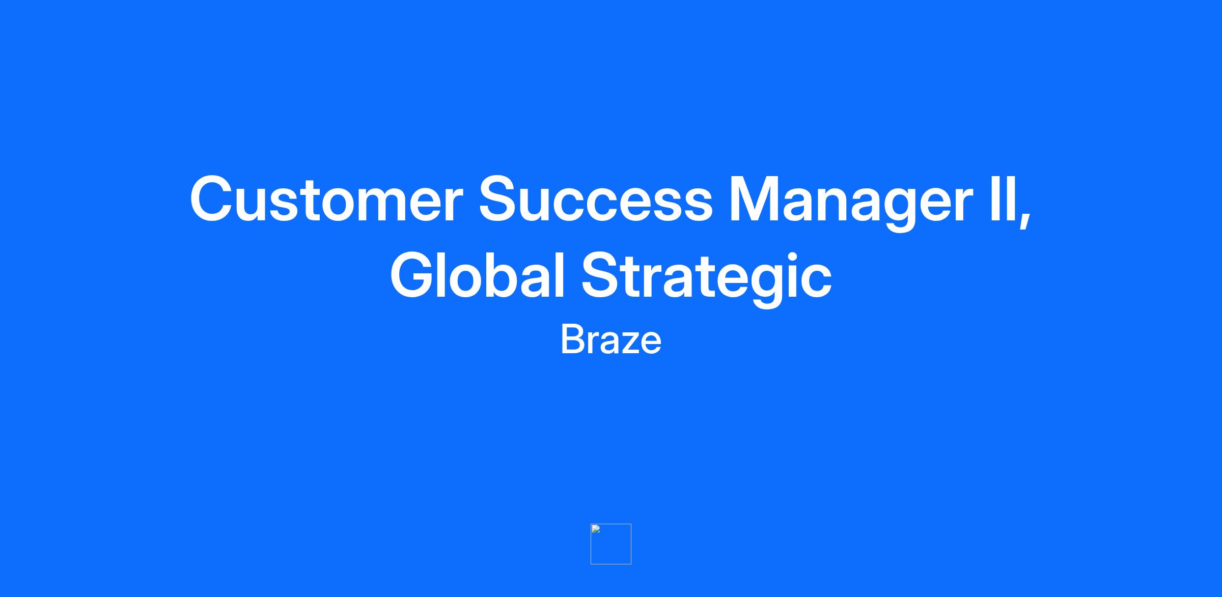 At Braze, we have found our people. We’re a genuinely approachable, exceptionally kind, and intensely passionate crew. We seek to ignite that passion by setting high standards, championing teamwork, and creating work-life harmony as we collectively navigate rapid growth on a global scale while striving for greater equity and opportunity – inside and outside our organization. To flourish here, you must be prepared to set a high bar for yourself and those around you. There is always a way to contribute: Acting with autonomy, having accountability and being open to new perspectives are essential to our continued success. Our deep curiosity to learn and our eagerness to share diverse passions with others gives us balance and injects a one-of-a-kind vibrancy into our culture. If you are driven to solve exhilarating challenges and have a bias toward action in the face of change, you will be empowered to make a real impact here, with a sharp and passionate team at your back. If Braze sounds like a place where you can thrive, we can’t wait to meet you. As a Customer Success Manager in our Strategic team you will be part of a team managing some of the world’s biggest and most recognizable international brands. Partnering with senior colleagues you will support individual business units with large group accounts. WHAT YOU’LL DO Own client renewals, retention and net retention targets for your customers within larger groups Be your customers’ main point of contact and trusted advisor at Braze Partner with Strategic CSMs and Account Executives to provide an excellent customer experience and to ensure commercial alignment Drive feature adoption by building a shared Success Plan with your customers, providing strategic guidance, enablement, and day-to-day advice to help them hit their objectives with Braze Assist the wider Braze account team in highlighting the value delivered by Braze for your customers to Drive customer advocacy by building strong customer relationships and creating mutual value for your customers and Braze Proactively analyze your customer product usage to identify opportunities and risks to account health Maintain ongoing regular contact with your customers via ad-hoc communications, regular check-ins, events, and Executive Business Reviews. Advocate for your customers, soliciting and synthesizing customer product feedback to contribute to product development Provide continuing education for customers to maximize product usage, identifying new or unused Braze features that could provide value for your customer and represent an upsell opportunity for Braze. In addition to being a dedicated contact for strategy, product training inquiries, and non-technical support, you will coordinate with other Braze teams including Technical Support, Industry Solutions, and Deliverability Services to ensure your customers receive the support they need simply and seamlessly Work with Onboarding Managers and other Customer Success Partners to seamlessly transition clients from onboarding to ongoing activity. You will likely spend time onsite with customers and may travel [internationally] Please note this job description cannot possibly cover every duty you may need to undertake, you may be asked by your line manager to handle other reasonable responsibilities commensurate with the role. WHO YOU ARE You have some client facing experience and the intention to progress your career in customer success You have excellent written and verbal communication skills You manage projects and tasks to completion You take initiative You’re interested and eager to learn more about both technical and marketing concepts with real world applications You are known for being a team player; we just can’t emphasize this enough You welcome feedback Your interests include marketing strategy, digital marketing, technology and mobile trends You are intellectually curious and are known as a problem solver, you're not afraid to tackle technical problems 3-6 years relevant experience in a related area, for example Onboarding, Customer Success, Implementations or Project Management WHAT WE OFFER Braze benefits vary by location, and we encourage you to review our specific benefits offerings for each country here. More details on benefits plans will be provided if you receive an offer of employment. From offering comprehensive benefits to fostering hybrid ways of working, we’ve got you covered so you can prioritize work-life harmony. Braze offers benefits such as: Competitive compensation that may include equity Retirement and Employee Stock Purchase Plans Flexible paid time off Comprehensive benefit plans covering medical, dental, vision, life, and disability Family services that include fertility benefits and equal paid parental leave Professional development supported by formal career pathing, learning platforms, and a yearly learning stipend A curated in-office employee experience, designed to foster community, team connections, and innovation Opportunities to give back to your community, including an annual company-wide Volunteer Week and donation matching Employee Resource Groups that provide supportive communities within Braze Collaborative, transparent, and fun culture recognized as a Great Place to Work® ABOUT BRAZE Braze is the leading customer engagement platform that empowers brands to Be Absolutely Engaging.™ Braze helps brands deliver great customer experiences that drive value both for consumers and for their businesses. Built on a foundation of composable intelligence, BrazeAI™ allows marketers to combine and activate AI agents, models, and features at every touchpoint throughout the Braze Customer Engagement Platform for smarter, faster, and more meaningful customer engagement. From cross-channel messaging and journey orchestration to Al-powered decisioning and optimization, Braze enables companies to turn action into interaction through autonomous, 1:1 personalized experiences. The company
