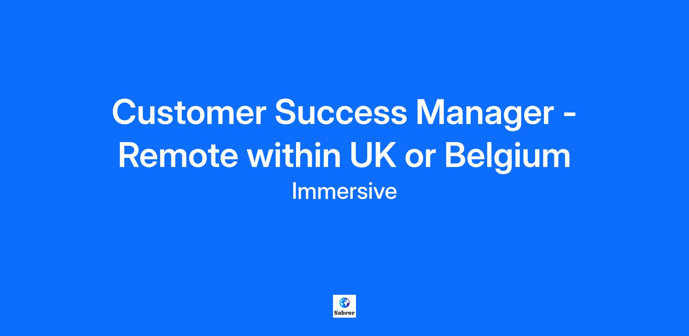 Customer Success Manager - Remote within UK or Belgium