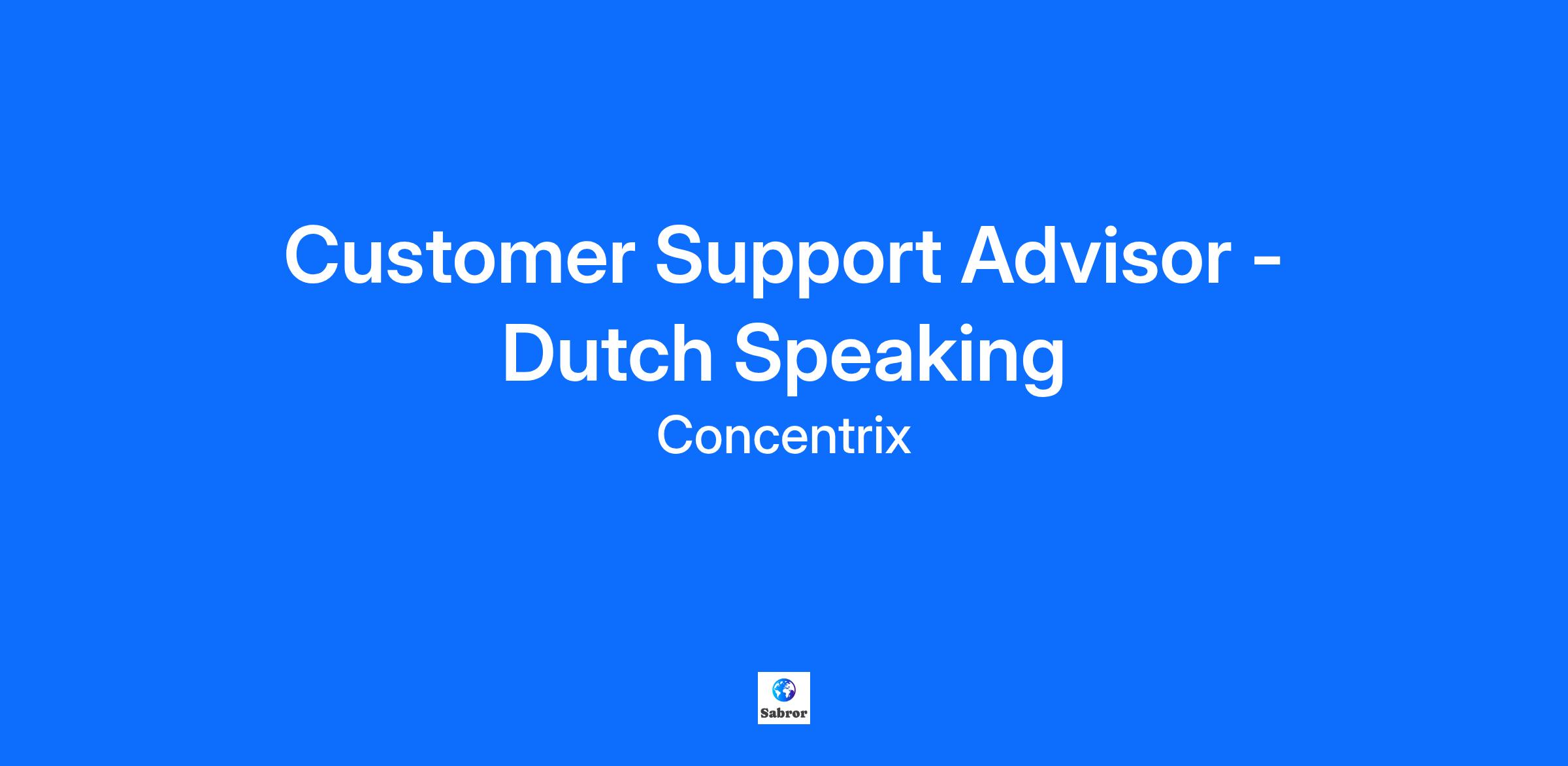 Customer Support Advisor - Dutch SpeakingJob Description