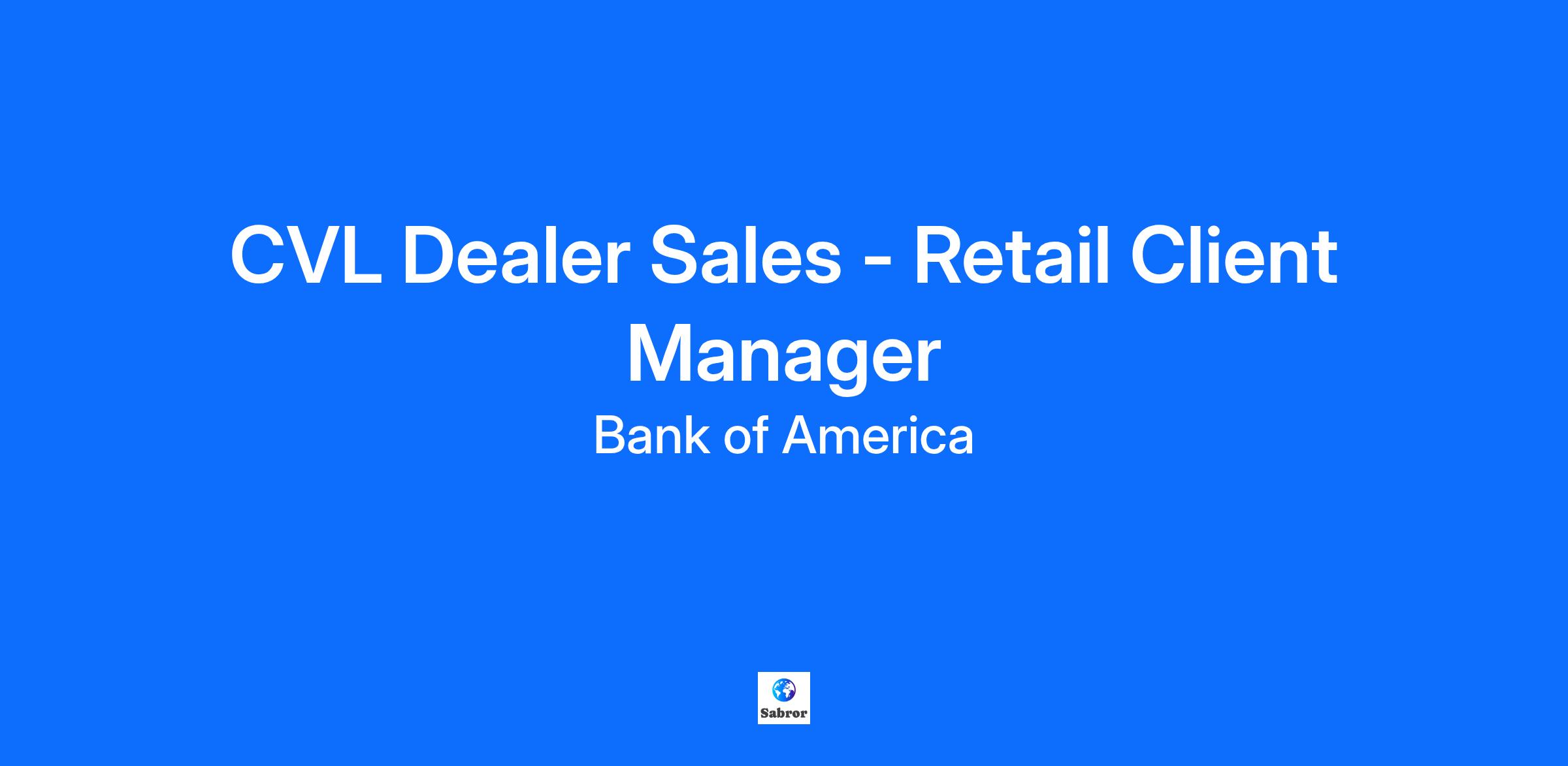 Job Description: At Bank of America, we are guided by a common purpose to help make financial lives better through the power of every connection. We do this by driving Responsible Growth and delivering for our clients, teammates, communities and shareholders every day. Being a Great Place to Work is core to how we drive Responsible Growth. This includes our commitment to being an inclusive workplace , attracting and developing exceptional talent, supporting our teammates’ physical, emotional, and financial wellness, recognizing and rewarding performance, and how we make an impact in the communities we serve. Bank of America is committed to an in-office culture with specific requirements for office-based attendance and which allows for an appropriate level of flexibility for our teammates and businesses based on role-specific considerations. At Bank of America, you can build a successful career with opportunities to learn, grow, and make an impact. Join us! The Retail Client Managers primary responsibility is to develop and manage dealer relationships for the purpose of increasing Auto & RV applications and loan production. The Retail Client Manager will prospect new clients, share the benefits of our program, and upon signing manage all aspects of the dealer's portfolio to ensure a mutually beneficial partnership is maintained. Secondary responsibilities include cross selling Merrill Edge, participating in local market leadership team activities, and working with DFS partners for referral opportunities. This position will also require working closely with underwriting and support staff to ensure all aspects of the market are appropriately managed. The position will require a self-motivated individual with strong communication skills, time management skills, computer skills, and the ability to perform market analysis, forecasting, and development. Responsibilities: • Develops and manages dealer relationships, including partnering on referral opportunities, to increase auto applications and loan production sales • Prospects new clients, articulates the program benefits, and upon signing, manages all aspects of the dealer's portfolio to ensure a mutually beneficial partnership is maintained • Works with underwriting and fulfillment partners to ensure all aspects of underlying risks are appropriately managed • Executes all categories of risk management activities, including monitoring dealer activity / negative news to drive proper dealer execution and minimize risk and exposure for the bank • Captures market intelligence and delivers feedback to leadership team • Represents Consumer Vehicle Lending (CVL) as the face of the business in the market, hosting client engagement events and industry conferences Skills: Business Development Client Management Customer and Client Focus Influence Prospecting Active Listening Adaptability Negotiation Networking Relationship Building Client Solutions Advisory Emotional Intelligence Referral Identification Minimum Education Requirement: High School Diploma / GED / Secondary School or equivalent Required qualifications : 5+ years experience selling retail financing to automotive dealerships or equivalent outside sales experience Strong communication and negotiation skills to effectively sell our value proposition and to maintain Dealer relationships The ability to be a strong individual contributor with a team player attitude. Ability to drive long distances with possible overnight stays Desired qualifications: The ability to work independently or in a team environment Established dealer relationships within the market Undergraduate degree Shift: 1st shift (United States of America) Hours Per Week: 40 Pay Transparency details US - OH - Cleveland - 1375 E 9TH ST - 1 CLEVELAND CENTER (OH4375) Pay and benefits information Pay range $88,900.00 - $117,600.00 annualized salary, offers to be determined based on experience, education and skill set. Discretionary incentive eligible This role is eligible to participate in the annual discretionary plan. Employees are eligible for an annual discretionary award based on their overall individual performance results and behaviors, the performance and contributions of their line of business and/or group; and the overall success of the Company. Benefits This role is currently benefits eligible. We provide industry-leading benefits, access to paid time off, resources and support to our employees so they can make a genuine impact and contribute to the sustainable growth of our business and the communities we serve. Privacy Statement: https://careers.bankofamerica.com/en-us/privacy-notice At Bank of America, we are guided by a common purpose to help make financial lives better through the power of every connection. Responsible Growth is how we run our company and how we deliver for our clients, teammates, communities and shareholders every day. One of the keys to driving Responsible Growth is being a great place to work for our teammates around the world. We’re devoted to being a diverse and inclusive workplace for everyone. We hire individuals with a broad range of backgrounds and experiences and invest heavily in our teammates and their families by offering competitive benefits to support their physical, emotional, and financial well-being. Bank of America believes both in the importance of working together and offering flexibility to our employees. We use a multi-faceted approach for flexibility, depending on the various roles in our organization. Working at Bank of America will give you a great career with opportunities to learn, grow and make an impact, along with the power to make a difference. Join us! Partnering Locally Learn about some of the ways Bank of America is making a difference in the communities we serve. Global Impact Learn about the six areas that guide Bank of America’s efforts to help make financial lives better for customers, clients, communities and our teammates. Opportunity and Incl