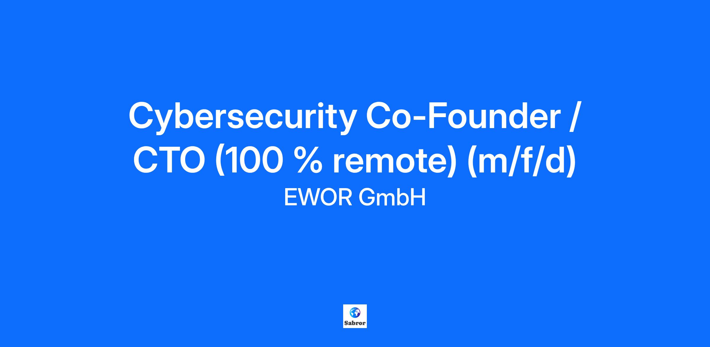 Cybersecurity Co-Founder / CTO (100 % remote) (m/f/d)