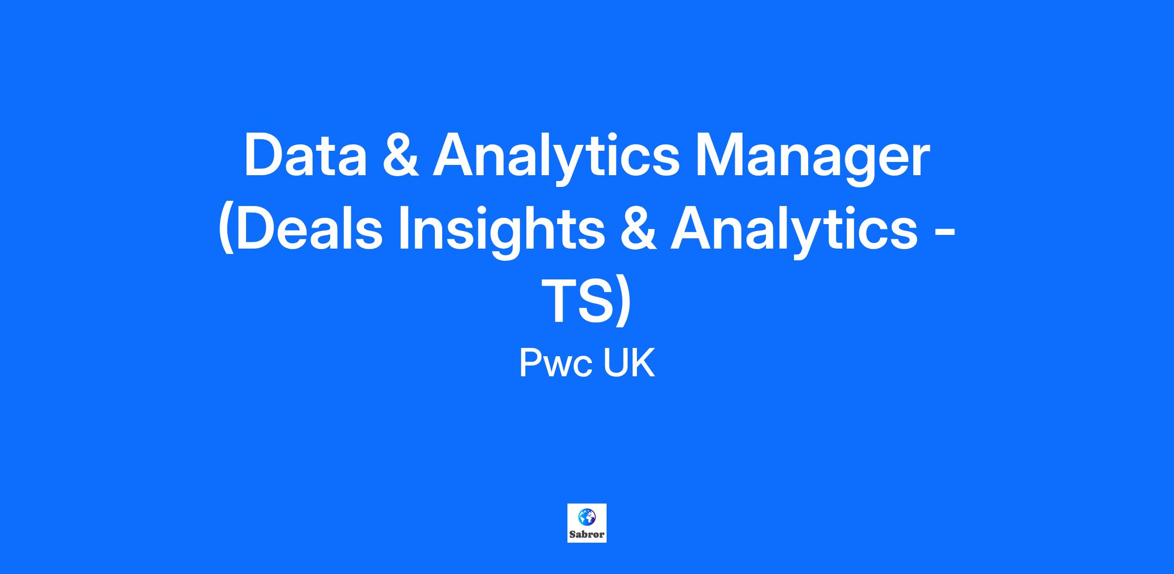 At PwC, our people in data and analytics focus on leveraging data to drive insights and make informed business decisions. They utilise advanced analytics techniques to help clients optimise their operations and achieve their strategic goals. Those in financial risk modelling at PwC will focus on developing and implementing models to assess and manage financial risks for clients. Your work will involve analysing data, conducting stress tests, and providing recommendations to mitigate risks. Who are we? We are the world’s largest and most successful deal analytics and modelling team. Sitting at the heart of PwC’s +$10bn global deals business, we work with the world’s largest investors on their most complex transactions and restructurings. Our purpose is to support the increasingly sophisticated client demand for advanced data-driven insights to underpin their critical investment decisions. We deliver this with: A range of products and services that deliver transformational insights to our clients throughout the deal cycle; Significant investments in cutting edge technologies and platforms A world class and truly diverse team with a range of data science, technology, commercial, financial and industry backgrounds For the right candidate, this is an amazing opportunity to build a career in an environment that fosters a creative and entrepreneurial spirit, with the unrivalled security, personal development, client access and investment that PwC brings. We offer an exciting, continuous development journey to help you become a market leading deals advisor. PwC operates in 136 countries around the world with over 364,000 employees and revenues of US$57bn. What you’ll be doing: Your main area of focus will be Deal Analytics which is used by our clients to support almost every critical business decision. As part of this team you will help design and deliver truly game changing analysis and insights to meet a range of business needs. By working through the deal cycle, you will use value focused data analytics to help businesses prepare for a deal process, work through deal execution and support them after the deal to drive improved business performance For example: Bringing structure and clarity to complex problems and business scenarios within tight deadlines Succinctly summarising the Value creation opportunity (e.g through a driver tree) to senior management Leading development of analytics showcasing the drivers and equity story of a business either to management or to bidders to increase deal confidence including appropriate review of the junior teams work and communicate issues to stakeholders Using your technical know-how and translating this for our non-technical stakeholders to support robust, evidence-based decisions Support the Senior leadership team with business development activities to pitch and win the project Most importantly, we need you to become a business partner and strategic advisor to our clients, translating and communicating your analysis to help answer the critical commercial questions. In summary, you will be part of an amazing team in which we’re confident you’ll have fun, learn loads, build confidence and have some fantastic personal and professional experiences. Example projects include: Working with privately owned businesses to prepare for a first sale process. Educating the owner management team on the data demands of a process, especially to Private Equity buyers and how the use of value focused analytics can de-risk the process, maximise bidder interest and increase sale value. Working with a listed Software business to acquire a carve out of an overseas software consultancy. Using data analytics to identify both future value opportunities and risks from the buyers perspective Using analytics to help a leading independent wealth adviser to underpin their business plan when coming to market and align to their value story for bidders Using leading analytics to bring together information from multiple global ERP systems to empower the locally based head office to drive more effective decisions and better prepare for a future deal process. How will you get us interested? You will be technically-minded, and driven by solving complex problems, and you get a kick out of explaining how you do it. You’ll be working with some excellent analytical brains, but also varying stakeholders for our clients, and for this reason you will know how to explain the technical details to non-technical people. You will use your commercial and financial skills to understand the drivers of a business, analyse their data and use this to provide clear insights and advice to our clients. Therefore, what we can’t go without is: Experience of leading multiple teams and projects in high-pressure environments Understand commercial drivers of a business and able to succinctly articulate this to stakeholders Able to articulate complex financial or technical concepts to non-finance staff Significant experience connecting disparate sources of data, structuring and cleansing it using data manipulation tools (e.g. Alteryx, SQL, Python, Power Query) Significant experience using data visualisation tools (e.g. PowerBI, Tableau, Qlikview) Experienced in partnering with high profile clients at multiple levels Experience of performing business development, assisting in pitching to clients, developing relationships You will be experienced and have a keen interest in coaching and mentoring others in data & analytics; always striving to upskill and empower your teams Proven capability to self motivate and learn The role requires flexibility to travel throughout the UK and potentially overseas. We’d love to tell you more, so press apply and chat to our recruitment team!