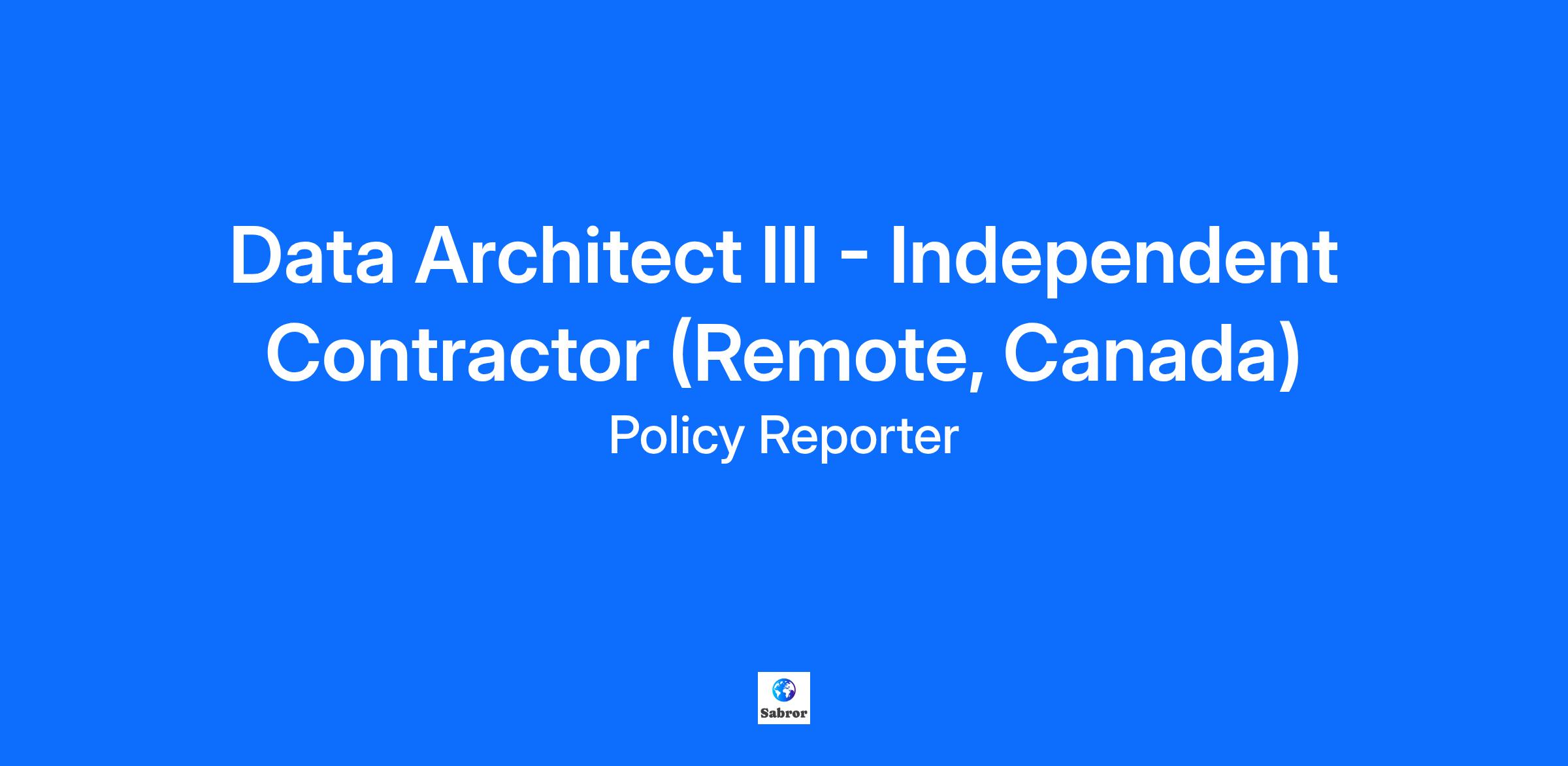 Data Architect III - Independent Contractor (Remote, Canada)
