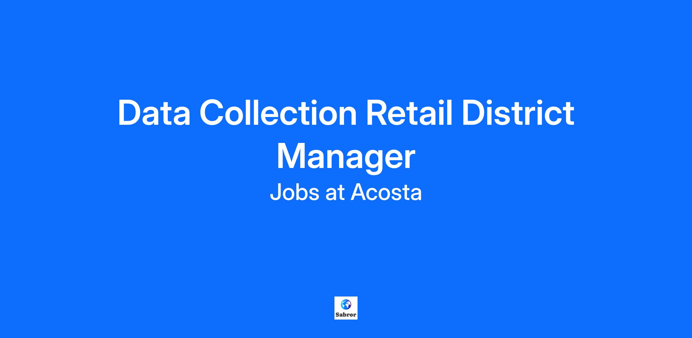 The purpose of the ACOSTA Data Collection Retail District Manager is to manage a team with on time delivery of high quality data. This is achieved by managing a remote group of qualified Team Leaders and Data Collectors on each aspect of their position.