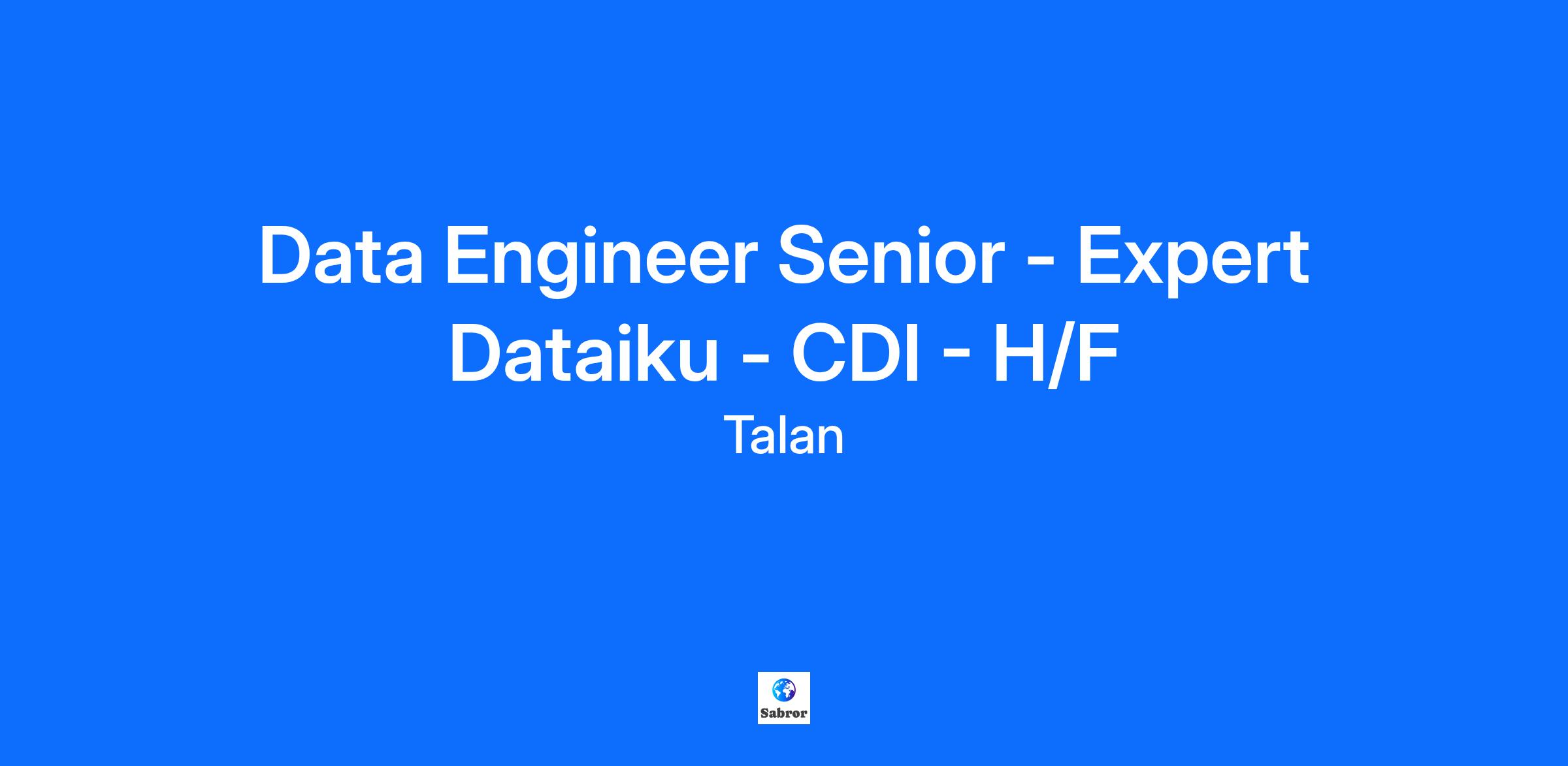 Data Engineer Senior - Expert Dataiku - CDI - H/F