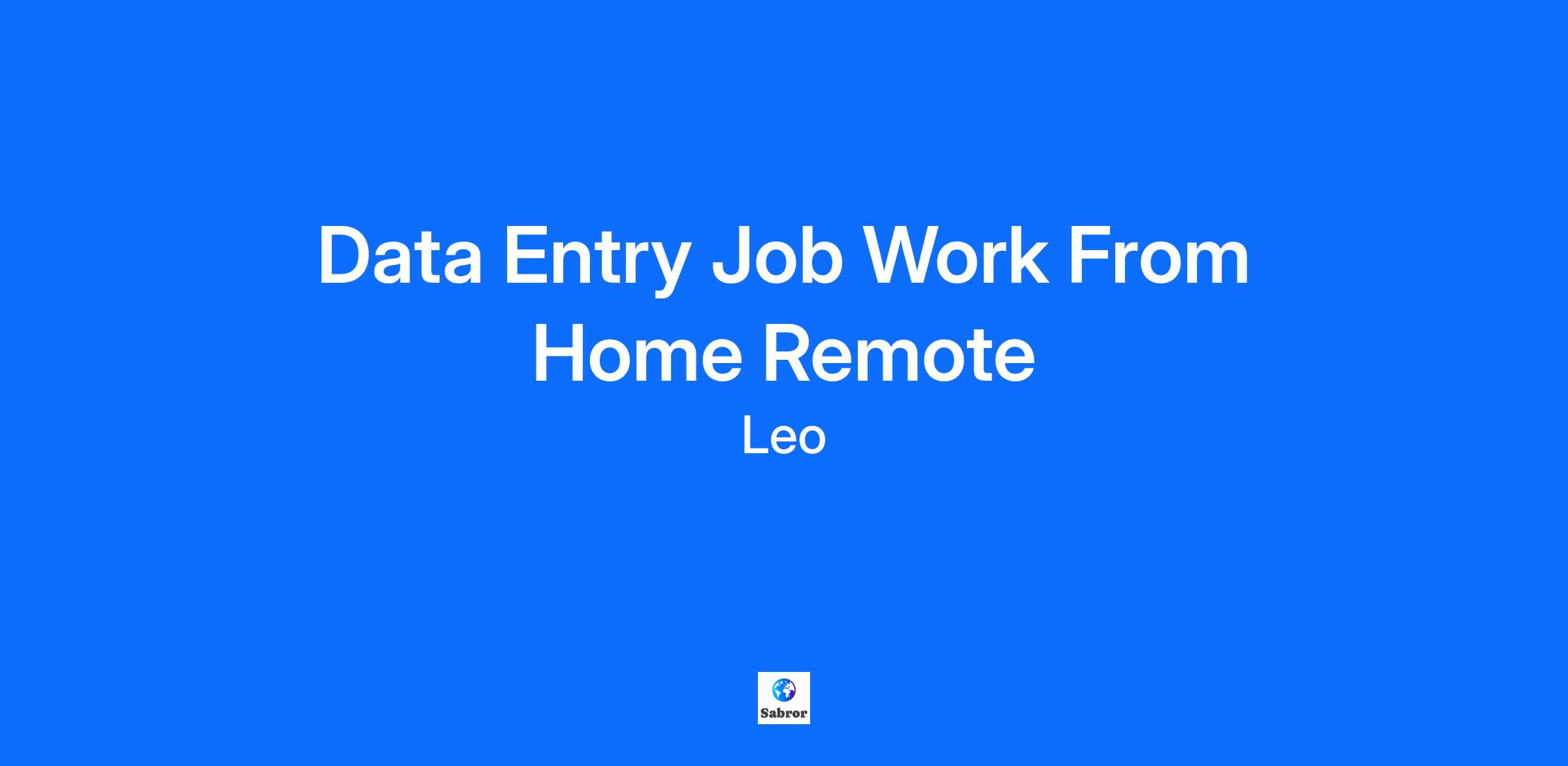 Data Entry Job Work From Home Remote
