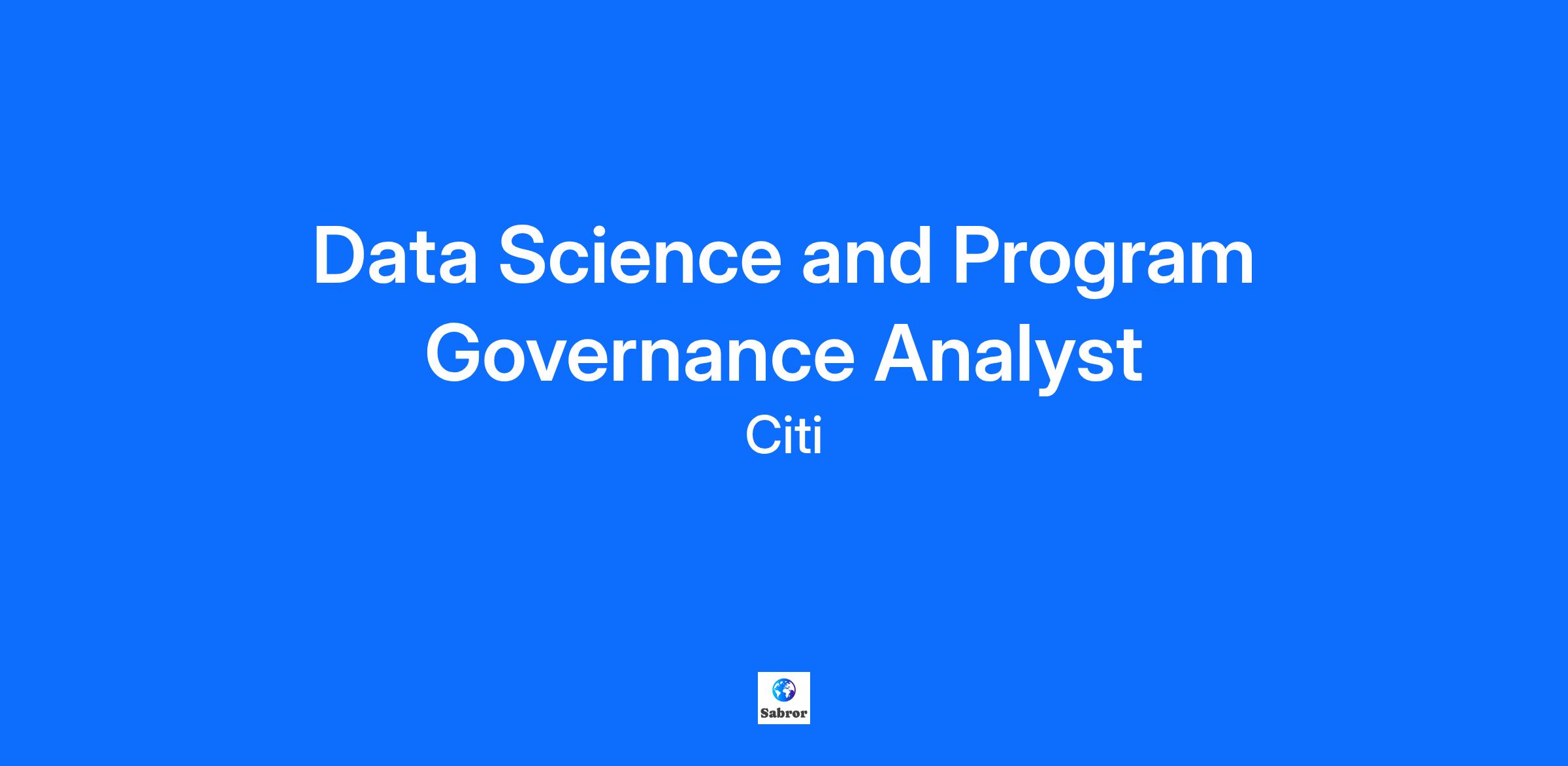 Data Science and Program Governance Analyst