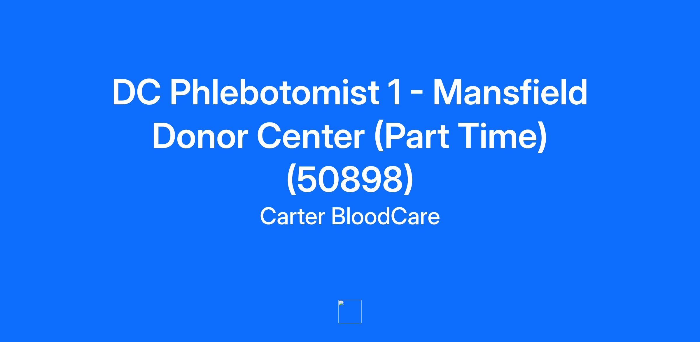 Job Details Job Location: Mansfield Donor Center - Mansfield, TX 76063 Position Type: Part Time Education Level: High School Diploma / GED Equivalent Job Shift: Varies According to Need Job Category: Health Care *** THIS POSITION REQUIRES FULL-TIME TRAINING FOR APPROXIMATELY 6 TO 8 WEEKS. AFTER TRAINING, THE EMPLOYEE WILL HAVE A PART-TIME SCHEDULE*** Ready to join us in life-saving work? Carter BloodCare is expanding our dynamic team of Phlebotomists. Whether you are new to the healthcare industry or interested in making the move, this is your opportunity! No experience is required—we're looking for individuals passionate about helping others, committed to delivering the highest care and customer service to our donors, and willing to learn. We currently have openings for Phlebotomists on our Mobile Collections and donor center teams. Our Mobile Collections teams travel to different locations for blood drives, providing a unique opportunity to connect with different donors daily. Our Donor Center teams are located throughout North, Central and East Texas. Donor Center team members have an opportunity to build relationships with regular donors who live and/or work near their donor center. This is your chance to be an essential part of the procurement process of safe and quality blood products. Take advantage of this fantastic opportunity. Apply now and take the first step toward an exciting and fulfilling career! The Life of a Phlebotomist What does a Carter BloodCare Phlebotomist do? Personally connect with donors, listen to their stories, and help them understand the impact of their donation. Collaborate with your teammates to create a friendly environment so our volunteer donors feel comfortable returning and encouraging their friends/family to donate Be detail-oriented all day, every day. This ensures that the blood you collect meets regulatory requirements and can be safely transfused. Work with your team to move, set up, and take down equipment at mobile blood drives. Training Schedule During the training, which can last up to nine weeks, the days and hours will vary depending on mobile drives or Donor Centers’ hours and may include early mornings, late nights, and weekends. Standard Schedule After Training To best meet the needs of our donors and the community, team members work a variable schedule which may include early mornings, late nights, weekends, and holidays. Schedules are provided 3 weeks in advance. Location Mobile Collections: Arrive in Bedford, TX each day and ride out to the designated blood drive(s) Donor Centers: Designated site within North, Central or East Texas Job Type: Full-Time (part-time opportunities may be available after training) Qualifications What are the required qualifications? High school diploma or equivalent Six months of general work experience OR comparable education in the medical field, such as an internship or externship. Customer service experience What are the preferred qualifications? Prior healthcare or phlebotomy experience Prior leadership experience Bilingual (Spanish) skills Motivated to become a designated van or CDL driver through company-sponsored programs What is in it for you? We provide paid training, competitive pay, career growth, and a complete benefits package. The best perk of all is saving lives – every day. It’s a job perk that’s hard to explain, but you’ll know it when you experience it. Competitive pay Starting rate of $18.25 (can increase if you have previous phlebotomy experience) Additional opportunities to earn Mobile Collections: Mobile differential after training - $2.00/hr CDL driver - $3.25/hr Van driver - $8/day Donor Centers: North Dallas Location Premium - $1.50/hr (Allen, Frisco, Garland, McKinney, and Plano Donor Centers only) Both Teams: Shift differentials Weekend differential - $1.00/hr Bilingual (Spanish) differential (must pass testing) - $2.00/hr Advancement opportunities Phlebotomist 2 Mobile-Site Supervisor Other opportunities throughout the organization Benefits Generous paid time off (PTO) – accrual starts on the first day of employment 401(k) with employer match contribution up to 6% after one year of employment Paid holidays including two floating holidays Group medical plan with pharmacy coverage Dental and vision plans 100% employer-paid life insurance 100% employer-paid AD&D 100% employer-paid employee assistance program (EAP) Long-term & short-term disability plans Flexible spending accounts (medical and dependent care) Legal protection plan Tuition reimbursement Language Learning Opportunity Program Apply now and become a part of Carter BloodCare’s legacy in impacting Texans’ lives! Carter BloodCare is an EEO/Affirmative Action employer. Carter BloodCare provides equal employment opportunities (EEO) to all employees and applicants and will not discriminate in its employment practices due to an employees or applicants race, color, religion, sex, sexual orientation, gender identity, age, national origin, genetic, and veteran or disability status. In addition to federal law requirements, Carter BloodCare complies with applicable state and local laws governing nondiscrimination in employment in every location in which the company has facilities. Carter BloodCare is a Pro Disabled & Veteran Employer. We maintain a drug-free workplace and perform pre-employment substance abuse testing.
