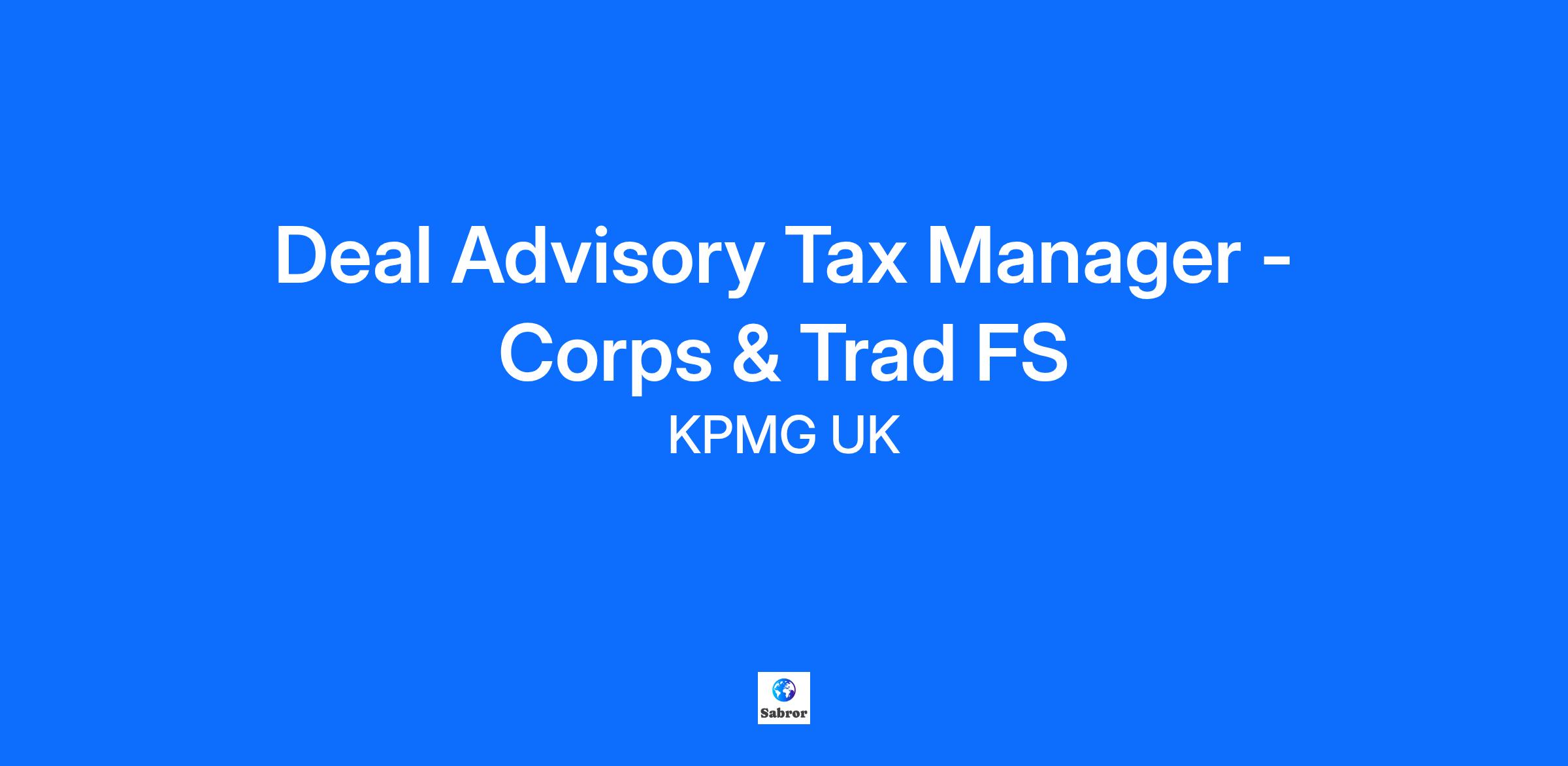 Deal Advisory Tax Manager - Corps & Trad FS