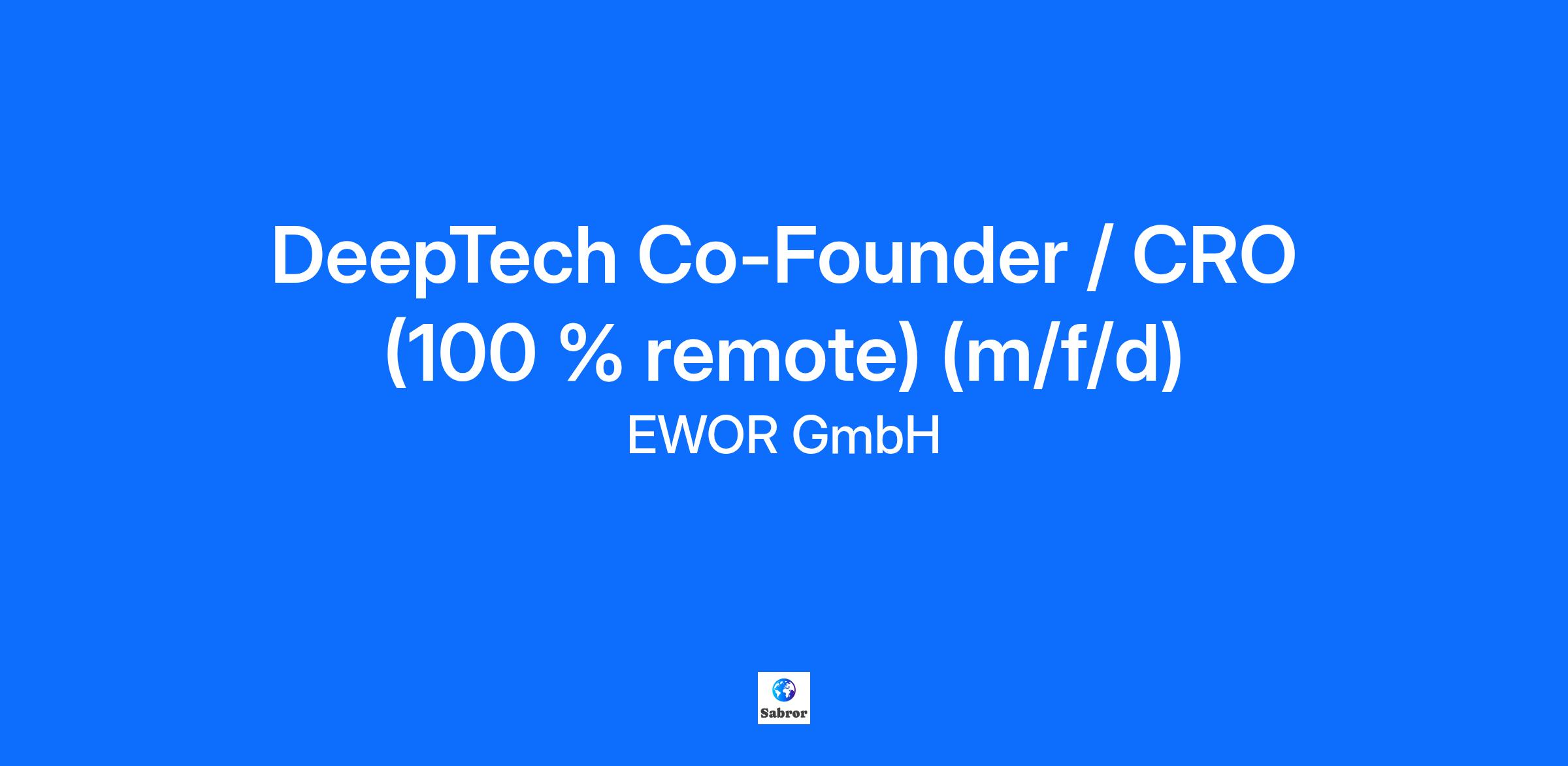 DeepTech Co-Founder / CRO (100 % remote) (m/f/d)