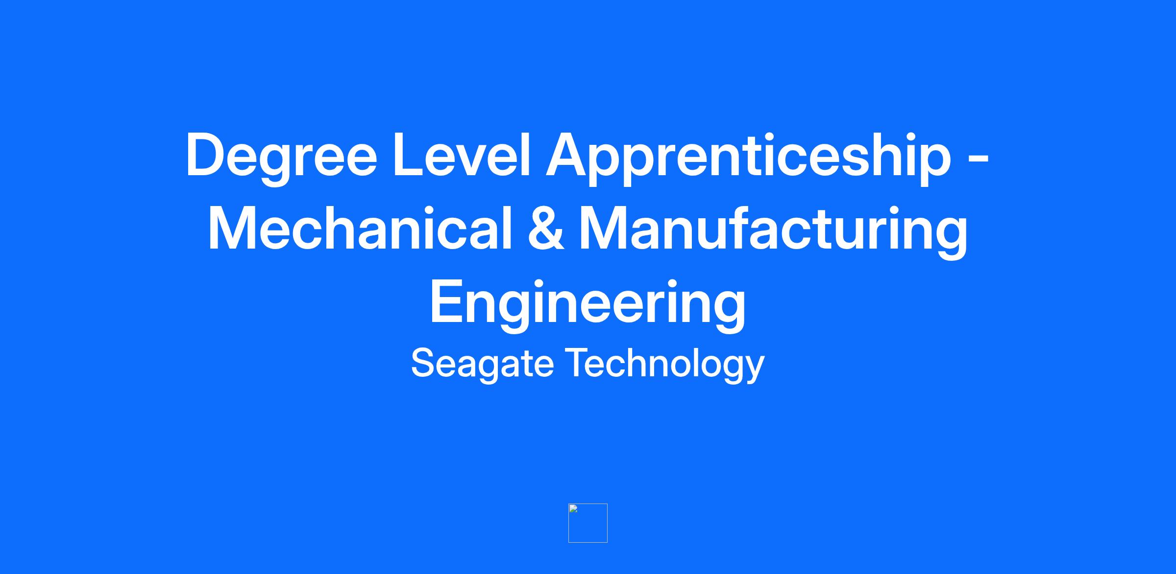 About our group: Seagate is looking to hire talented, career-focused, and highly motivated individuals through our 4-year Degree Apprenticeship program. This program offers training and a career path in Mechanical & Manufacturing Engineering, with education provided by Ulster University. Participants will not only receive their education at no cost but will also earn while they learn. Course details through Ulster University can be found in the following link: Mechanical and Manufacturing Engineering - Degree Apprenticeship BEng (Hons) at Ulster University 2025/26 entry - Part-time Undergraduate Study The hourly rate of pay that is being offered for this role is £13.85 per hour / annual compensation paid is £28,087.80After completing your 4 years of training and graduating you will be earning an annual salary of £34,009.56 (current rate for Graduate, on this job level). About our group: Seagate products help more people store, share, and protect their valuable digital content. With 97% of the world’s information being stored on hard drives, the rapid growth of digital data makes Seagate more important every day. Seagate is where the future is read and written, with continuous innovation proving that a hard drive is not “just” a hard drive. Find out how we are shaping a new era of storage as we craft the datasphere. As an industry leader, Seagate provides unique career opportunities to be part of today’s major technology shifts. They can be found around the globe and on our website. The Seagate Derry / Londonderry Manufacturing site has been open for 30 years this year. We have over 1400 people working in our facility which is among the most advanced in the world, in the design, development, and volume manufacturing of recording heads. These recording heads write information onto and read information from the recording disc, within the data storage device.About the role - you will: Successful candidates will be employed by Seagate to gain valuable experience in our thriving global manufacturing business while studying for a degree with no fees or costs associated with higher education. Throughout the four years you’ll develop invaluable skills in all elements of engineering, supported by close mentorship and academic guidance from Ulster University. Upon satisfactory performance and successful completion of the course, you will continue your career with Seagate, building on your knowledge gained. After the 4 years of training and upon completion of your degree, you will be offered a permanent position at Seagate as a Graduate Engineer. (On completion of your degree you must achieve a minimum level of 2.2). You Will: Have a mentor on site at Seagate with a full training plan Gain hands on experience Experience University teaching Gain a recognised qualification Have the opportunity to earn while you learn About you: Earn while you learn – continuing your studies with on-site experience. Complete a Level 6 Honours Degree qualifications in Mechanical & Manufacturing Engineering (over 4 years). Learn new technical skills to increase knowledge and ability in Mechanical and Manufacturing Engineering. Comply with health and safety policy and procedures. Coached & mentored by a wide variety of highly skilled, diverse, and experienced people. Be part of a high-performing team. Your experience includes: Self-motivation and enthusiastic. An excellent communicator. Experience or interest in Mechanical / Manufacturing / Engineering/Maintenance with desire to work in Engineering in a world class industry. To be successful in this role, you must end your schooling with the following grades: 3 x B’s (A Level or equivalent). Please provide your predicted grades on your application. Please review link for standard entry conditions: Mechanical and Manufacturing Engineering - Degree Apprenticeship BEng (Hons) at Ulster University 2025/26 entry - Part-time Undergraduate Study BTEC Level 3 National Extended Diploma in Engineering (Merit or above) At least two A Levels from: Maths, Further Maths, Physics, Chemistry, Technology and Design, Design and Technology, Double Award Science/Applied Science, Engineering, or Electronics (minimum BBB) A Levels combined with a BTEC Level 3 National Extended Certificate (Merit or above) You must include your predicted grades when submitting your application. To confirm that your qualification meets our entry requirements, please consult Ulster University’s Qualification Checker – Equivalence Entry Checker. BTEC Applicants: Please specify whether you are studying or hold Extended Certificates or Diplomas, and confirm whether your modules include: Engineering Principles Calculus to Solve Engineering Problems You must be over 18 years of age by 1st September 2026 Completed applications should be submitted no later than Sunday 15th February 2026. All offers of employment are conditional upon and subject to annual funding from DfE This is a Full-Time position working Mon – Fri, 2 day a week at Seagate and 3 days at Ulster University for the first year. Years 2, 3 & 4 will be 4 days a week on-site at Seagate and 1 day at Ulster University. During the University holidays you will be scheduled to work at Seagate E.G. Summer, Christmas etc. At Seagate we are committed to building a diverse, inclusive and authentic workplace. To see all vacancies that Seagate has available, please sign up - Register with our Talent Link for career updates and to be considered for future opportunities. Seagate Technology is committed to equal opportunity in employment and welcomes applications from all sections of the community irrespective of sex, marital status, religious affiliation, age, disability or ethnic origin. The Company specifically welcomes applications from the protestant community who are currently underrepresented in this job category. All applications will be considered strictly on the basis of merit. Location: Derry, Londonderry, Northern Ireland Our Springtown 