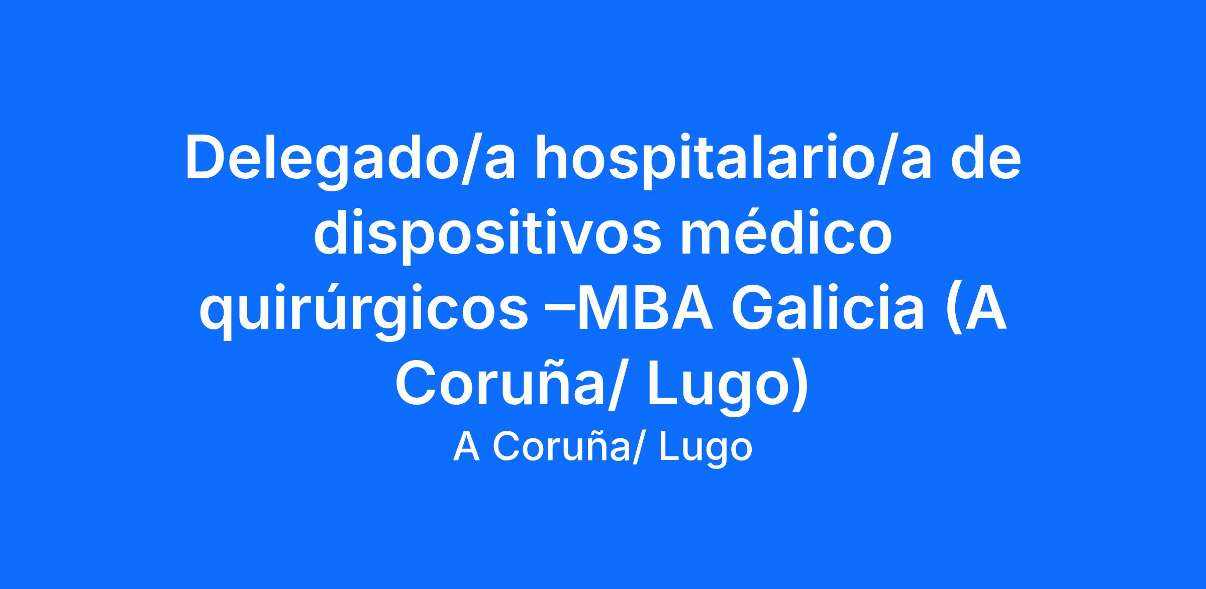 Estamos buscando incorporar un Delegado/a Comercial Hospitalario/a para las provincias de Lugo y A Coruña, con residencia preferentemente en alguna de ellas (no excluyente).