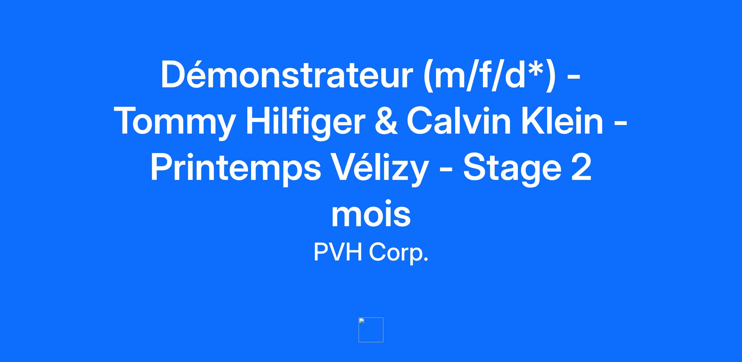 Design Your Future at PVH Démonstrateur (m/f/d*) - Tommy Hilfiger & Calvin Klein - Printemps Vélizy - Stage 2 mois A propos de PVH Créée en 1881, PVH est l'une des plus importantes entreprises textiles au monde. Parmi ses marques figurent Calvin Klein, acquise en 2003, et Tommy Hilfiger en 2010. A propos de ce poste Es-tu prêt.e à faire passer ta carrière au niveau supérieur et à rejoindre un parcours extraordinaire au sein de PVH ? Alors conçois ton avenir avec nous ! Rejoins notre équipe Tommy Hilfiger & Calvin Klein du Printemps de Vélizy, en tant que démonstrateur (m/f/d) en stage pour 2 mois à pourvoir dès que possible ! Voici les responsabilités qui te seront confiées afin d’atteindre nos objectifs communs : Fais vivre une expérience client unique et personnalisée Laisse parler ton tempérament commercial Sois le/la garant.e de la bonne tenue du point de vente : respect des guidelines visuel merchandising, réception et traitement des livraisons, gestion rigoureuse des stocks, encaissement… Transmets ta passion pour la mode et le produit Exprime ta créativité, sois curieux.se et THINK BIG ! Chez PVH, nous partageons une vision long terme avec nos collaborateurs.rices et plaçons l’évolution de leur carrière en priorité. De nombreuses opportunités pourront s’offrir à toi dans le futur ! A propos de toi Tu as idéalement une première expérience dans le secteur de la mode, du retail ou du commerce. Chez PVH nous sommes ouverts aux profils provenant de différents horizons. Ton niveau d’anglais te permet de répondre aux attentes de notre clientèle internationale. Postule dès maintenant, raconte-nous ton histoire et rejoins-nous ! Quelle est la prochaine étape ? Nos équipes examineront ta candidature, et t’appelleront si ton profil est compatible. Puis, tu auras l'opportunité de nous rencontrer lors d'un entretien. Nous sommes impatients.es de découvrir les prochains talents de PVH ! Welcome All @PVH ! Nous encourageons la diversité et le respect de l'individualité et nous sommes fier.ère.s de travailler avec des personnes talentueuses venant d'horizons différents. Les candidat.e.s sont considéré.e.s sans égard à leur âge, leur appartenance ethnique, leur sexe, leur expression de genre, leur identité de genre, leur nationalité, leur religion ou leur orientation sexuelle. Nous sommes convaincu.e.s que travailler dans un esprit d’inclusion favorise l’épanouissement de nos équipes et leur permet d’exprimer leur potentiel. Afin d’offrir un processus de recrutement inclusif et équitable, nous vous invitons à nous communiquer vos pronoms, prénom.s d’usage ou toute autre information relative à votre individualité lors du premier contact avec l’équipe Talent Acquisition. Toutes nos offres d'emploi sont ouvertes aux personnes en situation de handicap. *m/f/d : male/female/diversities REJOINS LA TEAM PVH #POWEROFPVH We are brand builders who focus our passion and creativity to build Calvin Klein and Tommy Hilfiger into the most desirable lifestyle brands in the world and at the same time position PVH as one of the best-performing brand groups in our sector.