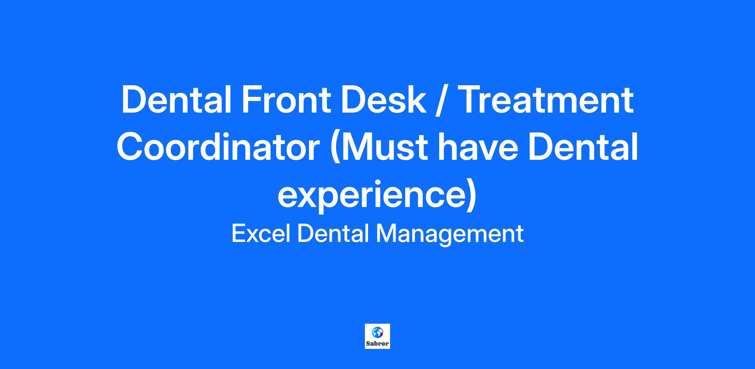 Qualifications for Dental Treatment Coordinator / Front Desk include: