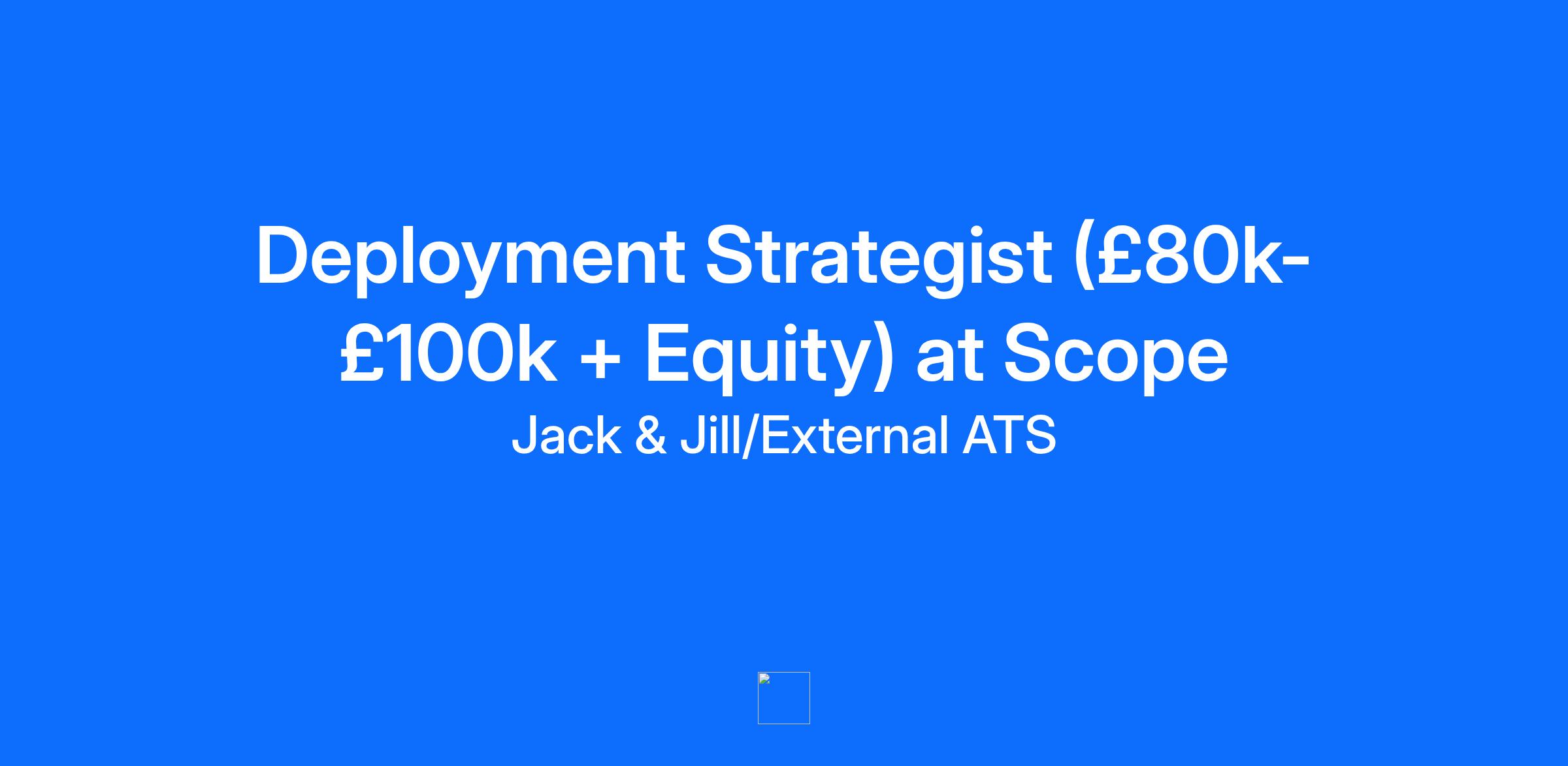 This is a job that we are recruiting for on behalf of one of our customers. To apply, speak to Jack. He's an AI agent that sends you unmissable jobs and then helps you ace the interview. He'll make sure you are considered for this role, and help you find others if you ask. Deployment Strategist Salary: £80k–£100k + Equity Company Description: Scope is a fast-growing AI startup building an AI-native workflow platform for large enterprises, helping them streamline critical processes and scale operational performance. Job Description: Scope is hiring an early-career Deployment Strategist to scale post-sales processes and drive the growth of large enterprise accounts. You’ll operate at the intersection of business and product, translating customer needs into roadmap priorities while navigating complex organizations to close and expand 6–8 figure contracts. This is a high-responsibility, high-upside role with significant exposure to leadership and substantial earning potential. Location: London, UK Why this role is remarkable: Directly influence the growth trajectory of a rapidly scaling AI company by managing high-value enterprise accounts. Benefit from uncapped earning potential, with 1–2% of new account value. Shape the product roadmap through direct translation of customer needs into feature requirements. What you will do: Build and run post-sales processes, scaling client accounts from hundreds to hundreds of thousands of reports. Serve as the primary customer-facing contact, converting client needs into product roadmap items. Navigate complex enterprises to close and expand high-value (6–8 figure) contracts. The ideal candidate: An ambitious early-career generalist eager to take on meaningful responsibility and ownership. Demonstrated ability to manage complex customer relationships and high-stakes environments. Comfortable travelling and putting in the work required to scale accounts with substantial, uncapped upside. How to Apply: To apply for this job speak to Jack, our AI recruiter. Step 1. Visit our website Step 2. Click 'Speak with Jack'. Step 3. Login with your LinkedIn profile. Step 4. Talk to Jack for 20 minutes so he can understand your experience and ambitions. Step 5. If the hiring manager would like to meet you, Jack will make the introduction.