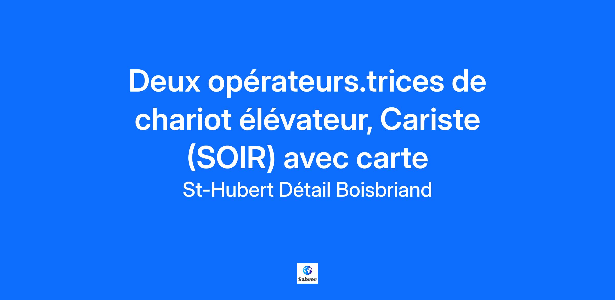 Nous cherchons à compléter notre équipe de caristes sur le quart de soir, L'horaire de travail est du lundi au vendredi de 14h00 à 22h30. Possibilité de temps supplémentaire en semaine ou la fin de semaine.