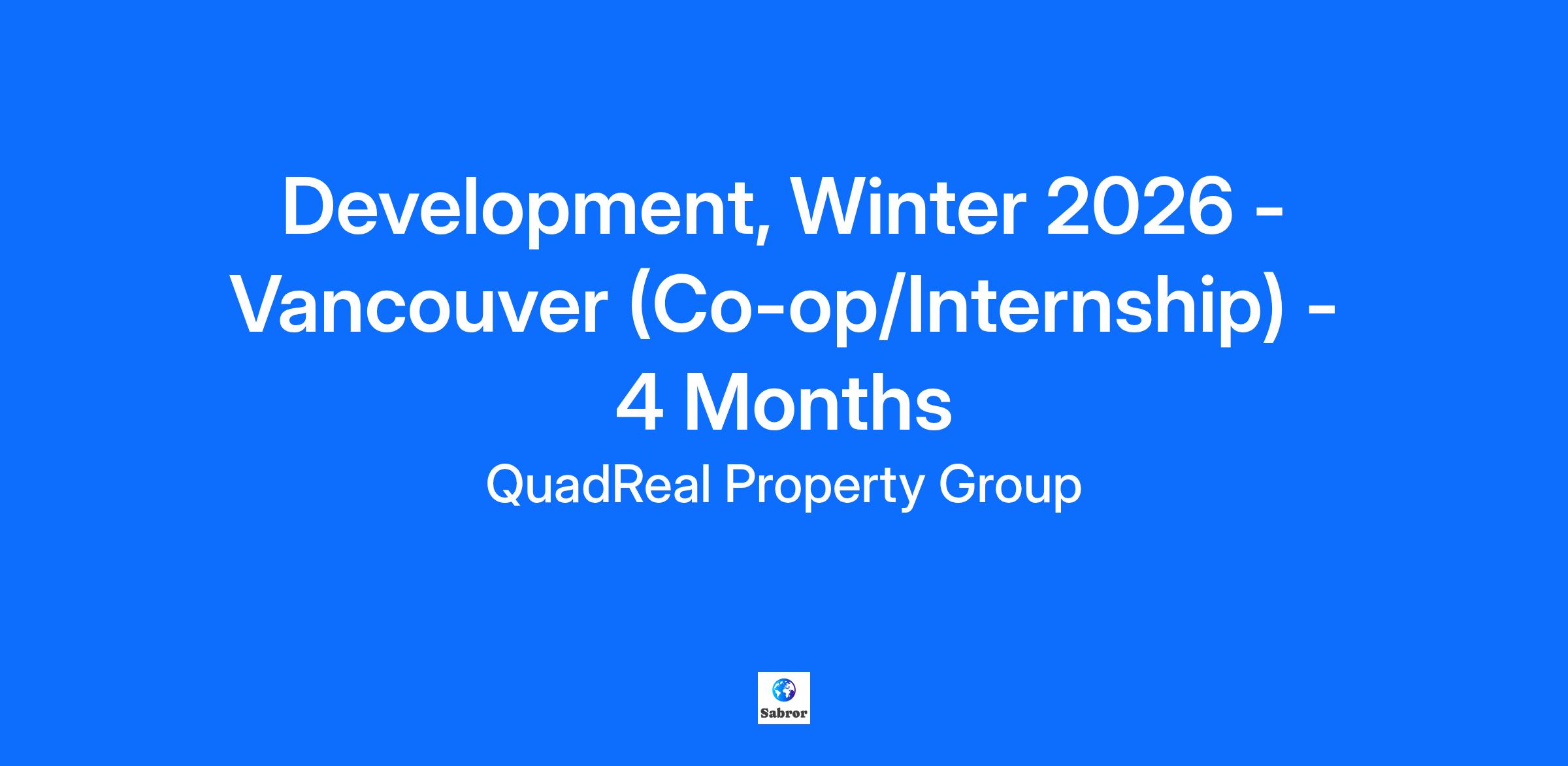About QuadReal Property Group QuadReal Property Group is a global real estate investment, operating and development company headquartered in Vancouver, British Columbia. Its assets under management are $94 billion. From its foundation in Canada as a full-service real estate operating company, QuadReal has expanded its capabilities to invest in equity and debt in both the public and private markets. QuadReal invests directly, via programmatic partnerships and through operating platforms in which it holds an ownership interest. QuadReal seeks to deliver strong investment returns while creating sustainable environments that bring value to the people and communities it serves. Now and for generations to come. QuadReal: Excellence lives here. www.quadreal.com We are committed to providing our Co-ops/Interns with a student experience that provides a supportive and engaging learning environment while developing skills and business acumen. Students will have the opportunity to participate in a variety of experiences including our Corporate Speaker Series, Fireside Chats, Volunteer opportunities and Networking events. Eligibility Note: To qualify for a student (Co-op/Internship) opportunity, students must be enrolled in their academic studies at a post-secondary institution (university/college) and must be returning to school after completion of their work term with QuadReal. If you are a student registered in an official co-op program at your post-secondary institution and completion of a final work term is a mandatory component for you to graduate, you are eligible to apply with the understanding that you will leave QuadReal at the end of your work term or have the possibility to be considered for full-time opportunities. Based in Vancouver, the Co-op/Intern, Development, will report to the Manager, Development Analysis, and support QuadReal’s Development, Western Canada team. The in-house development team at QuadReal is committed to advancing its development program while being guided by a long-term vision, focused on thoughtful and responsible execution. We focus on supporting and growing our relationships while being respectful, open, and transparent. We value key stakeholders (community, city staff, political, consultants/contractors/service providers) as our trusted partners. What We Offer: An organization and leaders that support your development through meaningful work experience A Student Mentorship Program designed to provide 1:1 support throughout your experience Opportunities to build your industry knowledge through Corporate Speaker Series & Fireside Chats Giving back to community with your peers and team members through volunteering events Opportunities to build long lasting industry and professional relationships What You Will Experience: Create and maintain detailed financial models for development projects, including multi-family residential (rental and condominium), industrial, retail and office property types Conduct market research supporting feasibility analyses, market positioning, and tracking comparable development activity across product types Investigate and analyze municipal planning and zoning policy to support development conceptualization, master planning, and design development Prepare investment memorandums supporting the development process Prepare regular progress reports on development projects What You Will Bring: Completing a university degree with a major in Real Estate, Planning, Finance, Mathematics/Statistics, Computer Science or Economics Strong quantitative and analytical skills; detail-oriented and proficient in building and handling complicated data sets Excellent communication and presentation skills; demonstrate an ability to effectively communicate and present results that articulate key themes and messages Must be able to allocate time effectively and work under pressure to meet tight deadlines, handle multiple demands and competing priorities, and adapt to new ideas and change. Comfortable following direction but also contributing to the direction Must have advanced knowledge of Excel, PowerPoint and Word; knowledge of Argus Enterprise a plus Must be extremely proactive and work well in a collaborative environment, with the ability to take guidance but then move projects forward independently Embrace and pro-actively support QuadReal’s values and its culture of environmental sustainability and corporate and social responsibility Previous experience working with a real estate company (asset manager or developer), planning consultancy, real estate brokerage or advisory firm, appraisal firm, or real estate lender is desirable. A strong interest in developing a career within real estate is essential Don’t have all of the above skills? Don’t worry. We still want to hear from you! The expected hourly range for this role is $28. #LI-DNP Note to Recruiters: QuadReal does not accept unsolicited resumes from any source other than directly from a candidate. Any unsolicited resumes sent to QuadReal, directly or indirectly, will be considered QuadReal property. QuadReal will not pay a fee for any placement resulting from the receipt of an unsolicited resume. A recruiting agency must first have a valid, written and fully executed agency agreement contract for engaged services to submit resumes. QuadReal Property Group will provide reasonable accommodation at any time throughout the hiring process for applicants with disabilities or for those needing job postings in an alternate format. If you require accommodation, please advise the Talent Acquisition team member you are working with and include the following: Job posting #, your name and your preferred method of contact. At QuadReal, we create spaces that enhance the lives of the people and communities we serve. Headquartered in Vancouver, Canada, our vision is to be a leading global real estate partner—driving meaningful impact while delivering prudent growth and strong returns. With a global prese