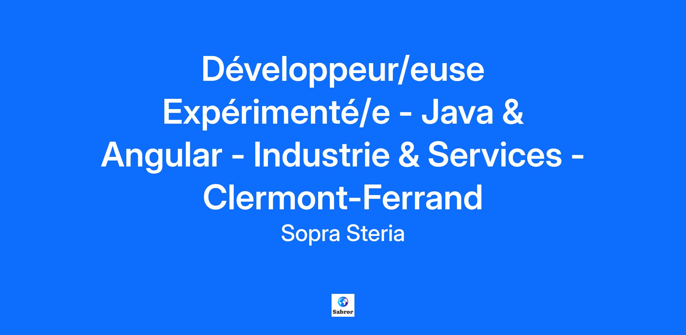 Développeur/euse Expérimenté/e - Java & Angular - Industrie & Services - Clermont-Ferrand