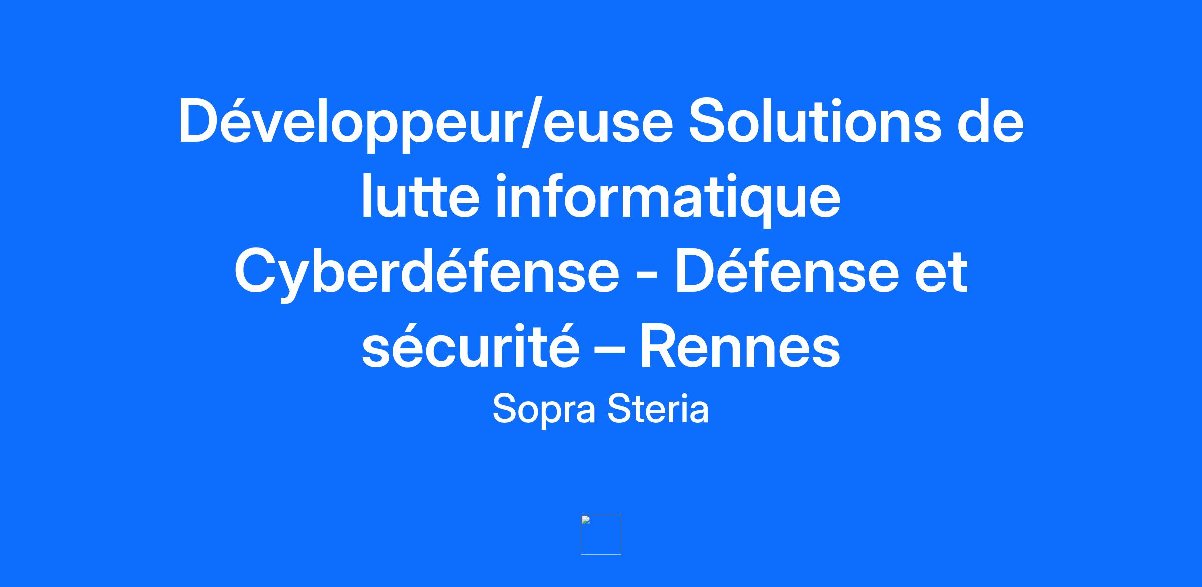 Développeur/euse Solutions de lutte informatique Cyberdéfense - Défense et sécurité – Rennes