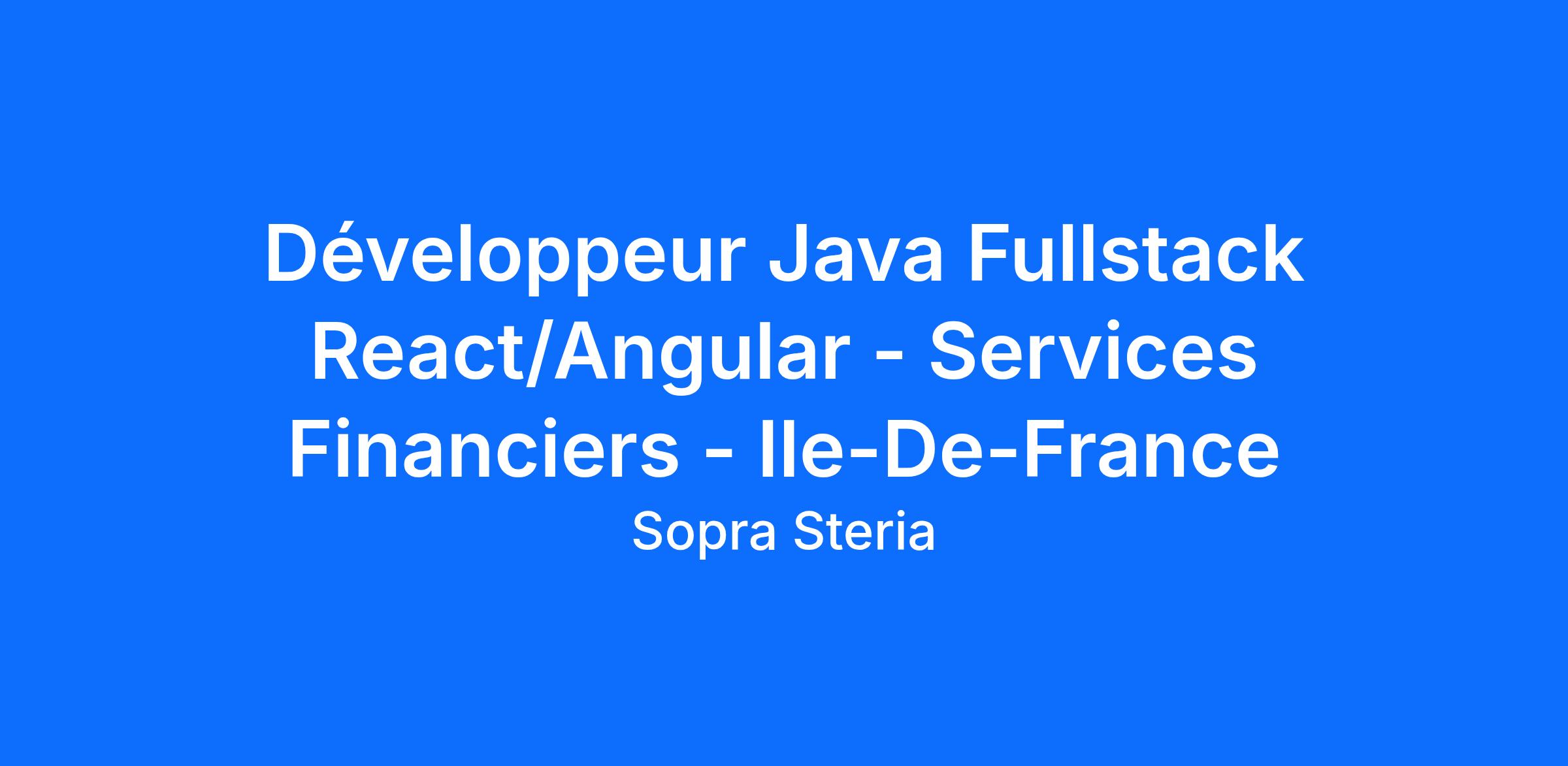 Votre environnement technique : Java 8/11/17, Oracle, PostgreSQL, JBoss EAP 7, Spring, Hibernate, Talend, Angular ou React.
