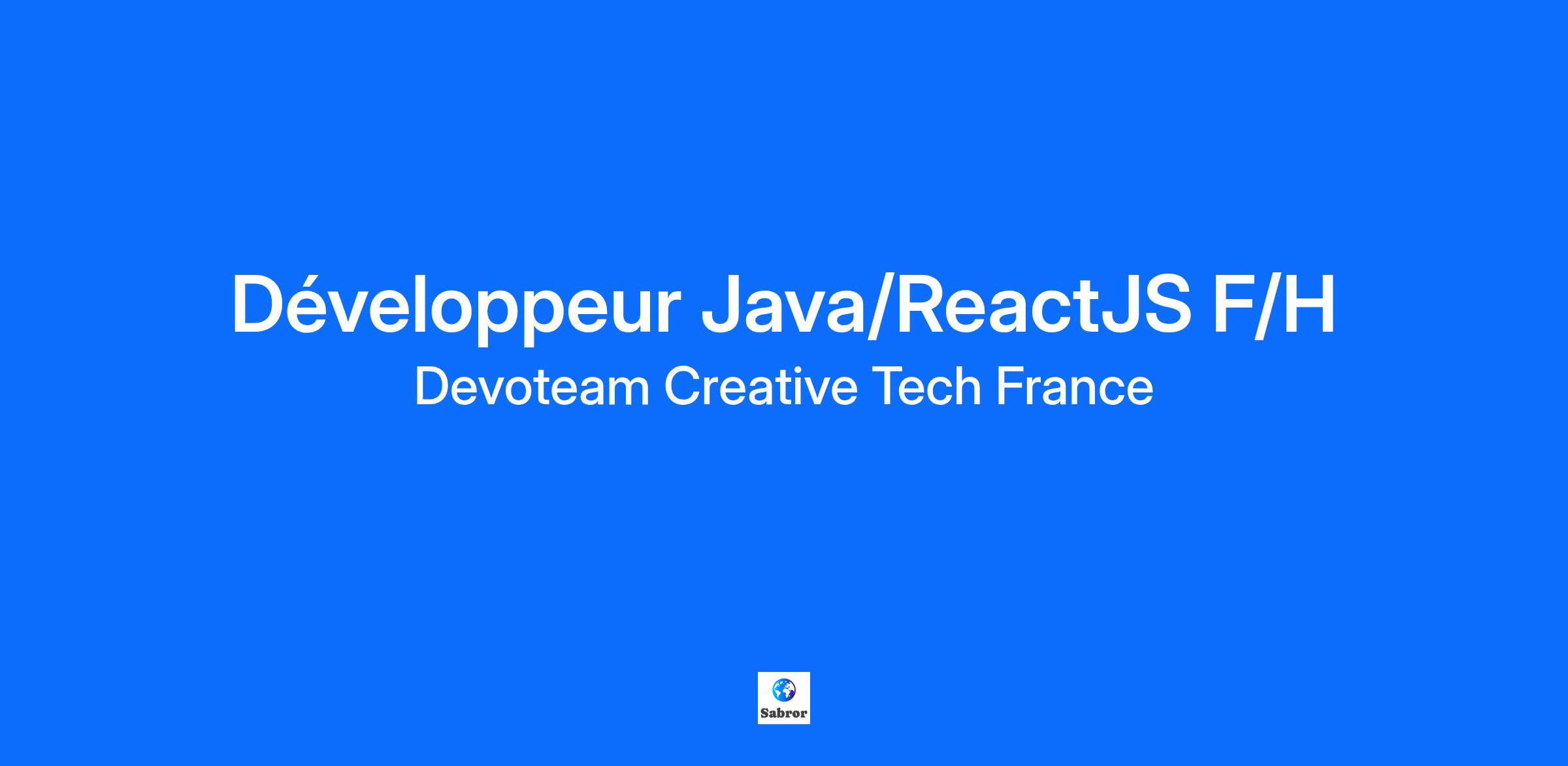 Pour développer l’activité Java au sein de la Squad Creative technology, nous recherchons un(e) développeur(se) fullstack Java/React.js.