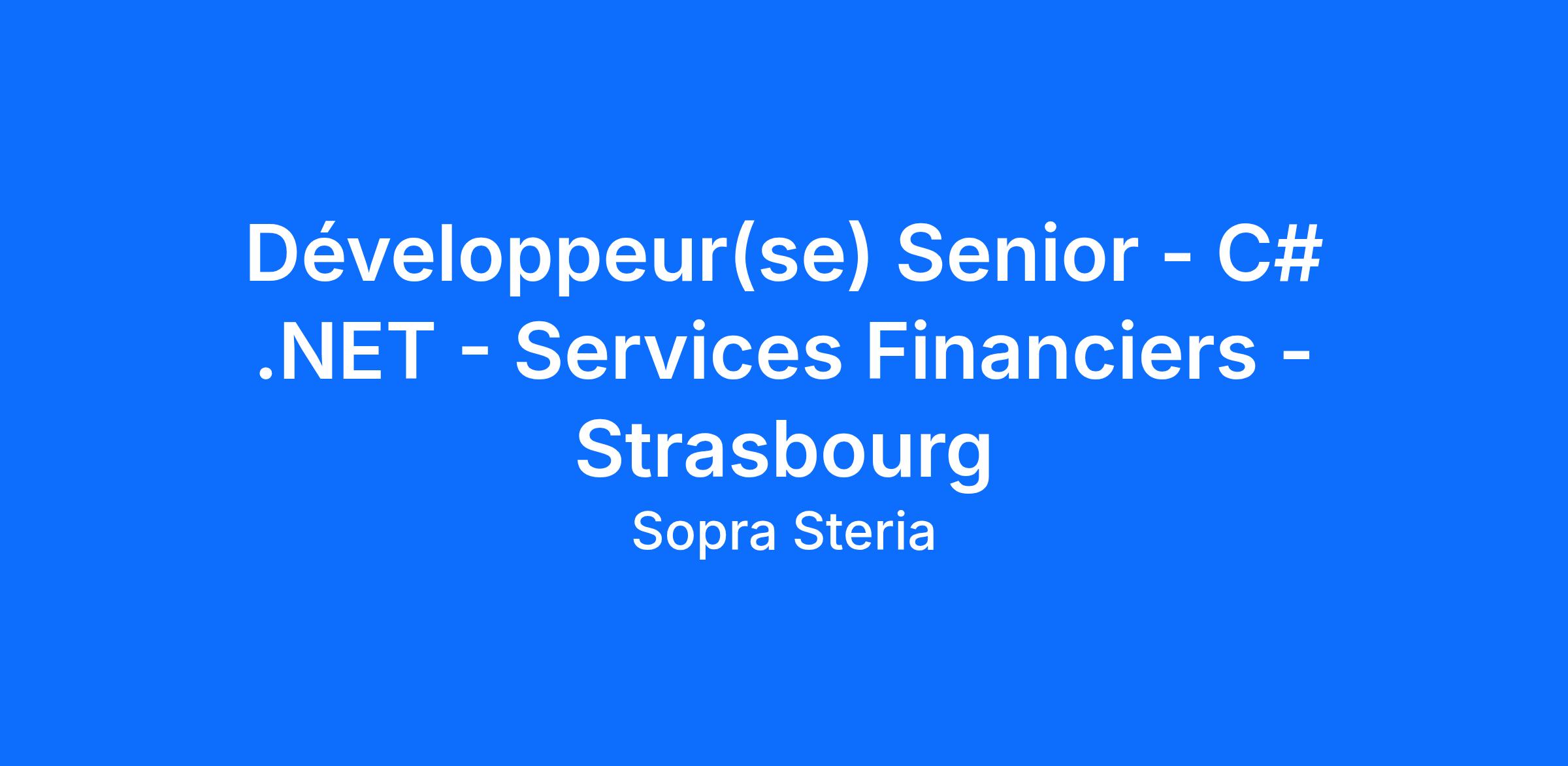 Dans le cadre d’un recrutement en CDI, vous rejoignez les équipes Sopra Steria Services Financiers à Strasbourg et intervenez auprès de clients majeurs du secteur bancaire et financier, sur des projets C# / .NET à forte valeur métier.