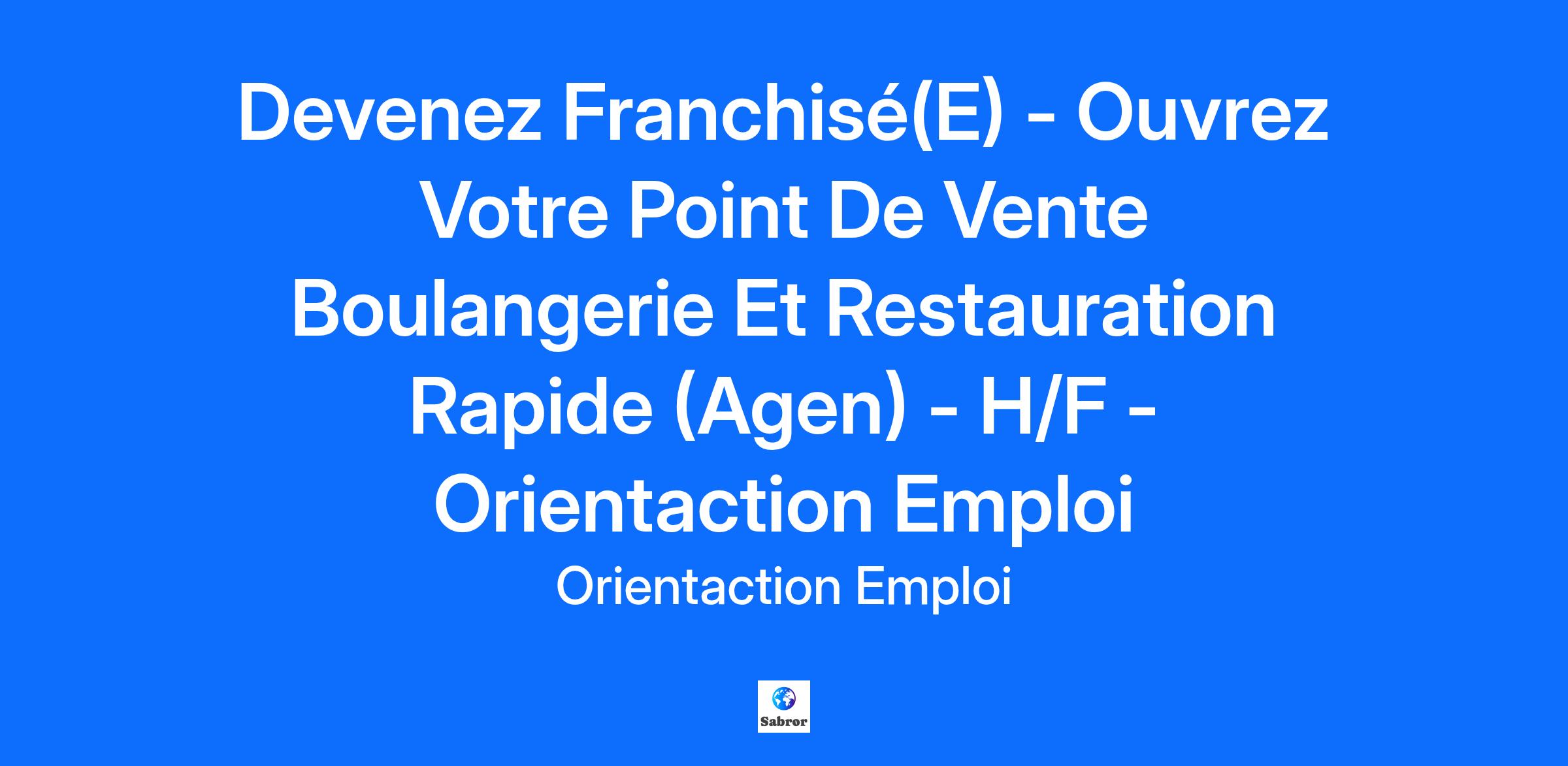 Devenez Franchisé(E) - Ouvrez Votre Point De Vente Boulangerie Et Restauration Rapide (Agen) - H/F - Orientaction Emploi