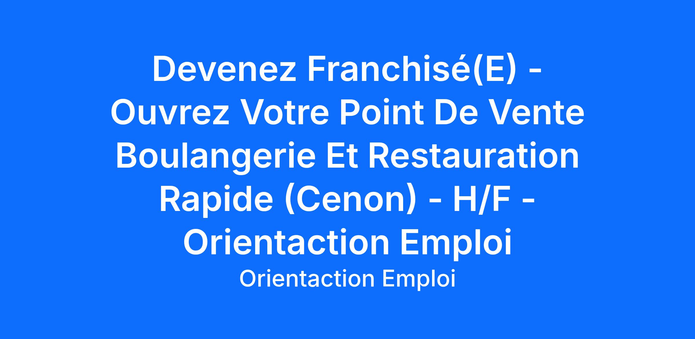 N'attendez plus et devenez votre propre patron en boulangerie & restauration rapide !