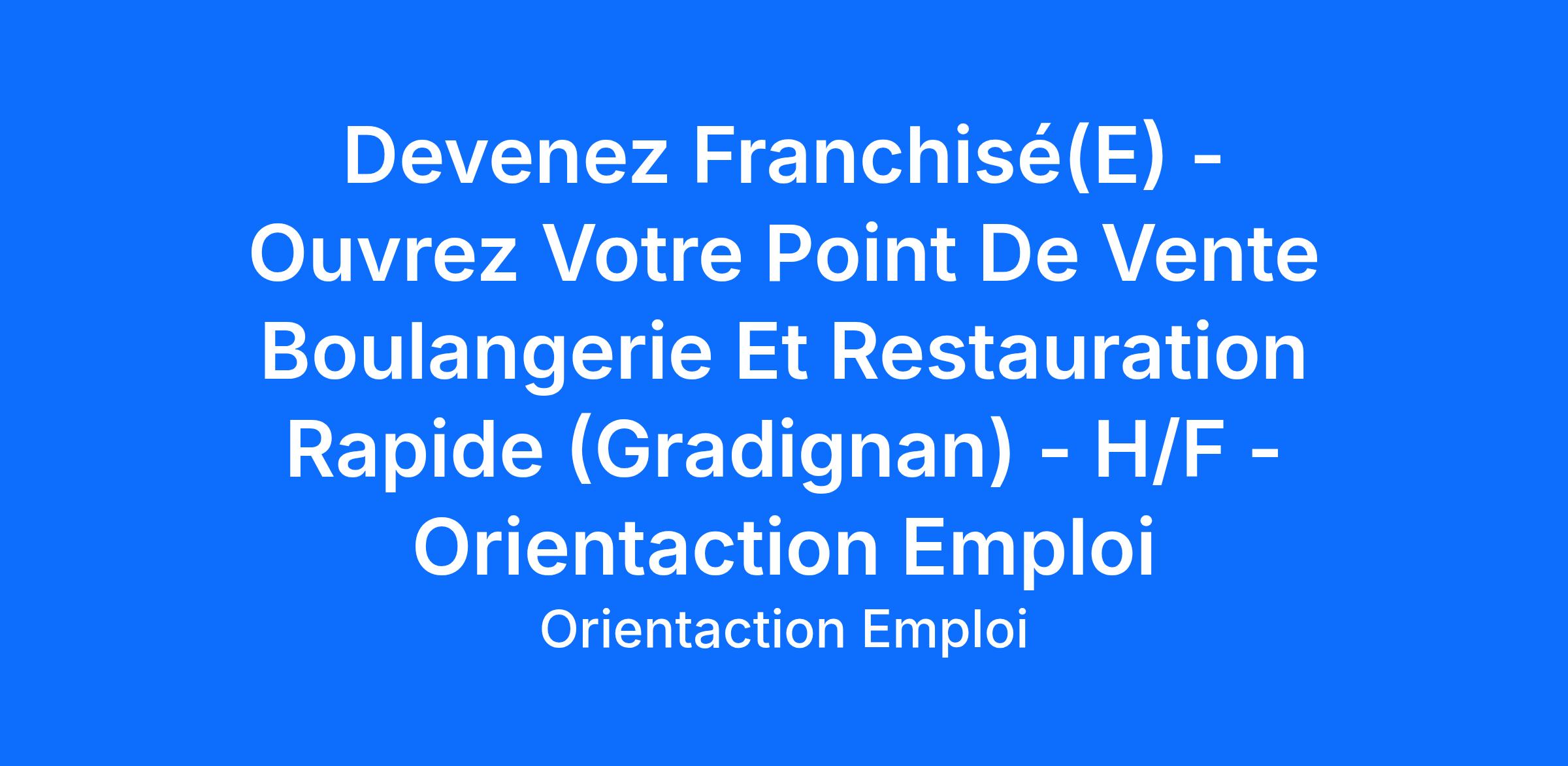 Devenez Franchisé(E) - Ouvrez Votre Point De Vente Boulangerie Et Restauration Rapide (Gradignan) - H/F - Orientaction Emploi
