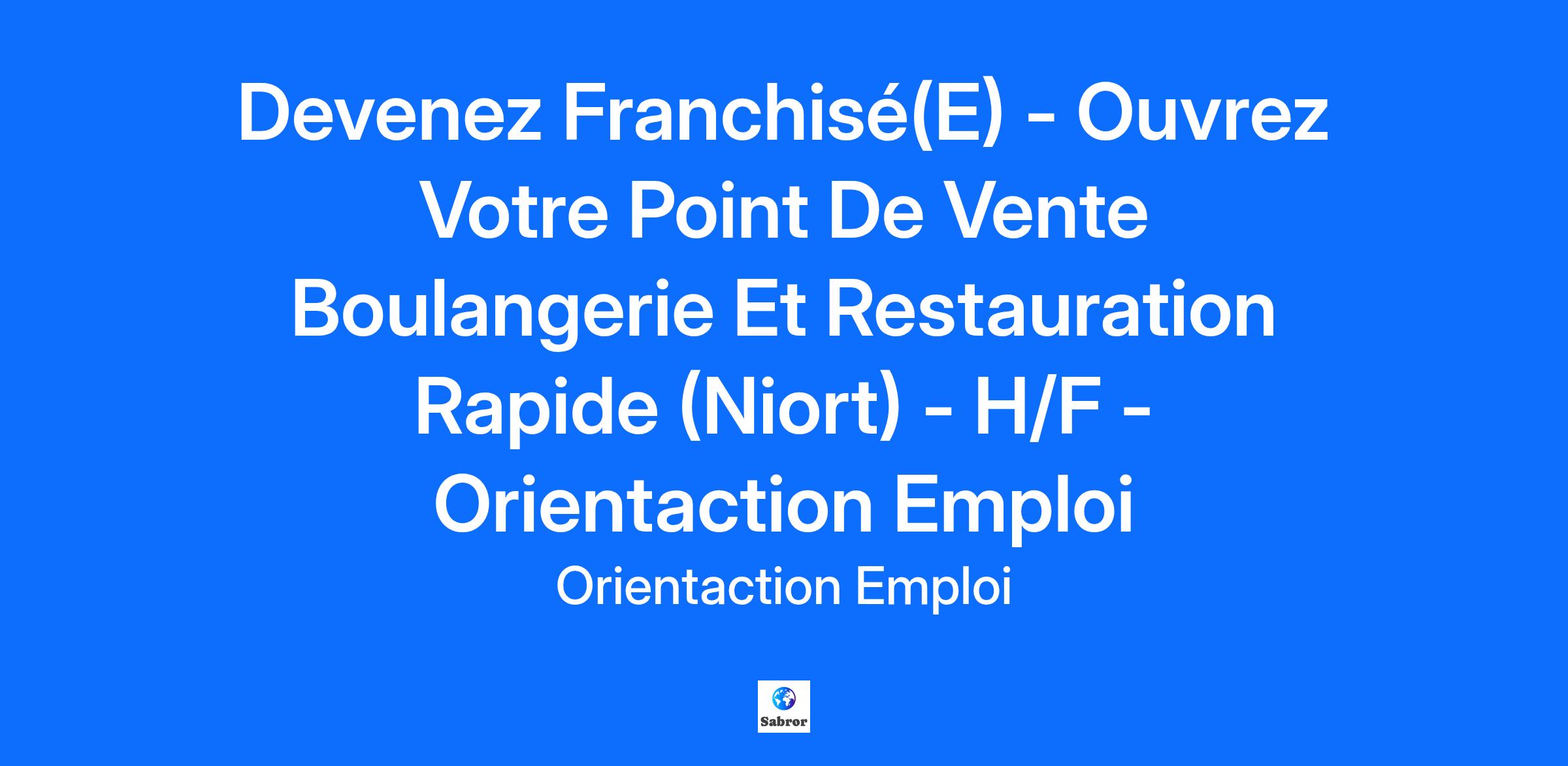 Devenez Franchisé(E) - Ouvrez Votre Point De Vente Boulangerie Et Restauration Rapide (Niort) - H/F - Orientaction Emploi