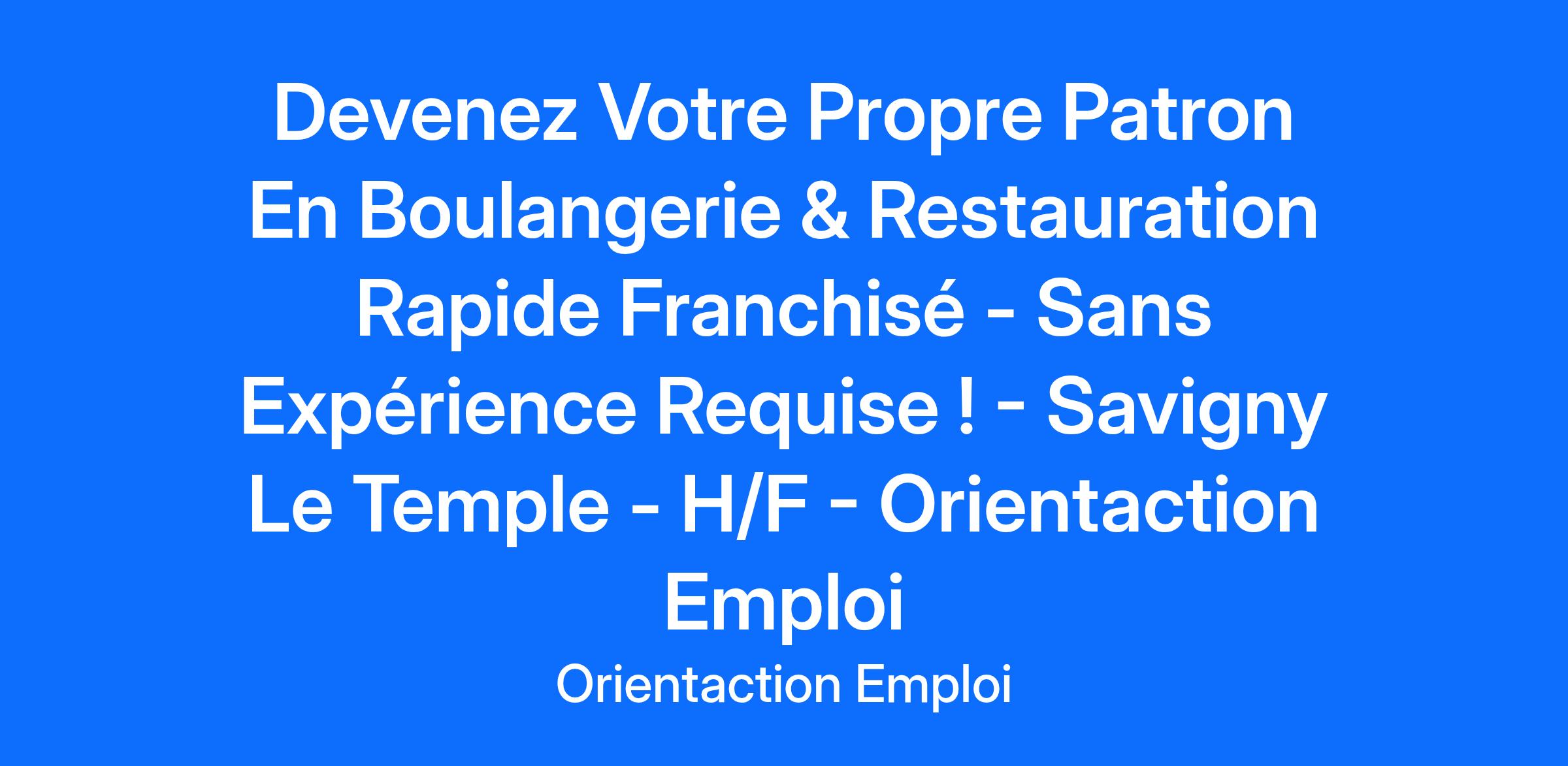 Devenez Votre Propre Patron En Boulangerie & Restauration Rapide Franchisé - Sans Expérience Requise ! - Savigny Le Temple - H/F - Orientaction Emploi