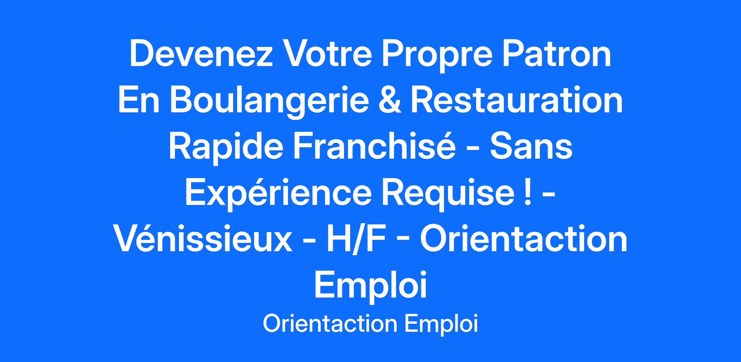 Devenez Votre Propre Patron En Boulangerie & Restauration Rapide Franchisé - Sans Expérience Requise ! - Vénissieux - H/F - Orientaction Emploi