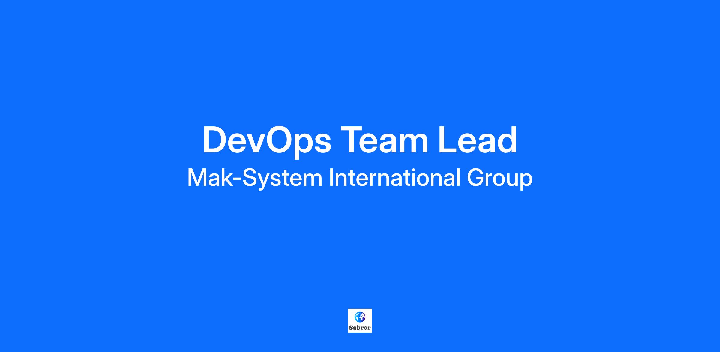 Job Role DevOps Team Lead