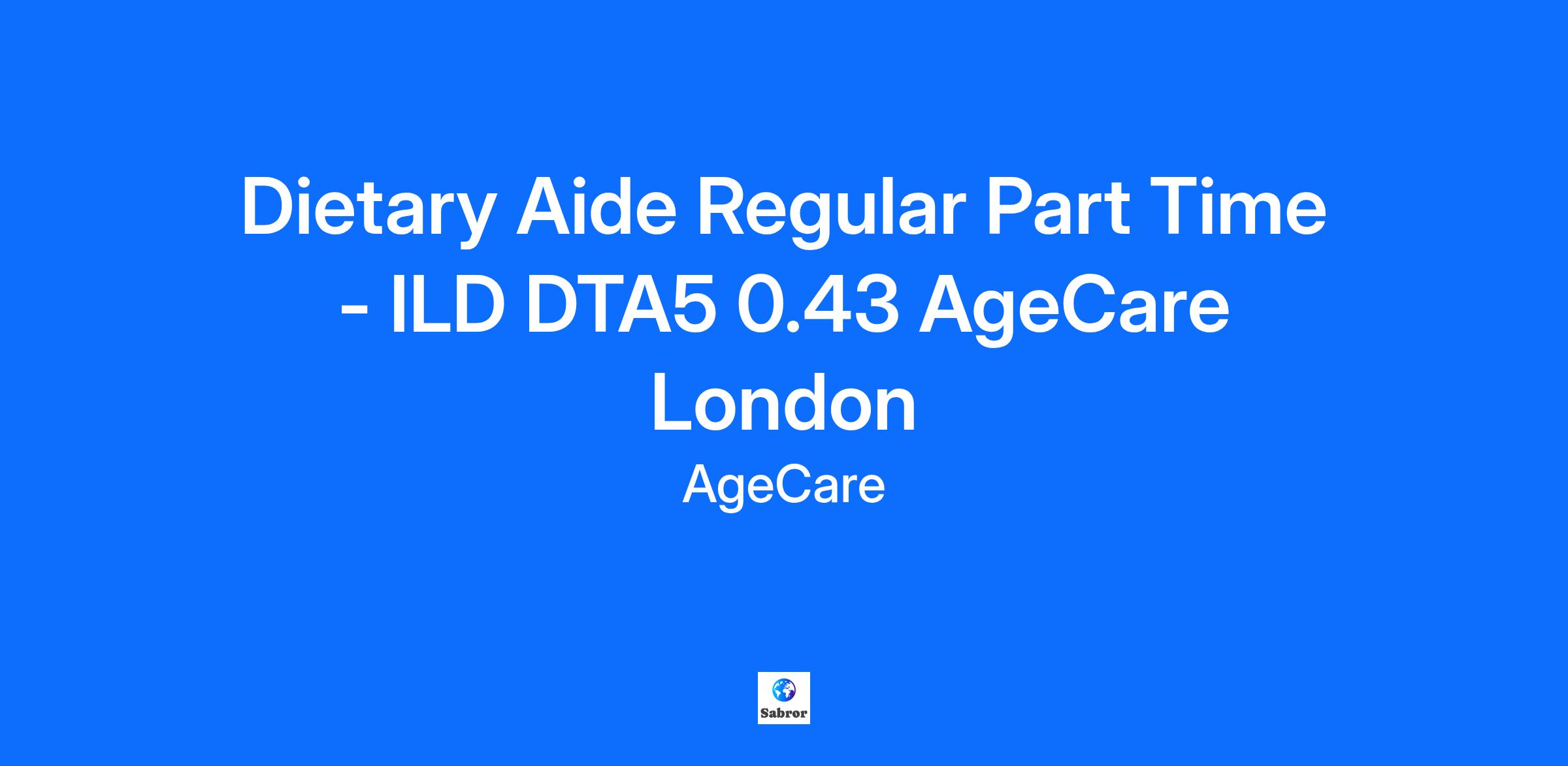 Dietary Aide Regular Part Time - ILD DTA5 0.43 AgeCare London