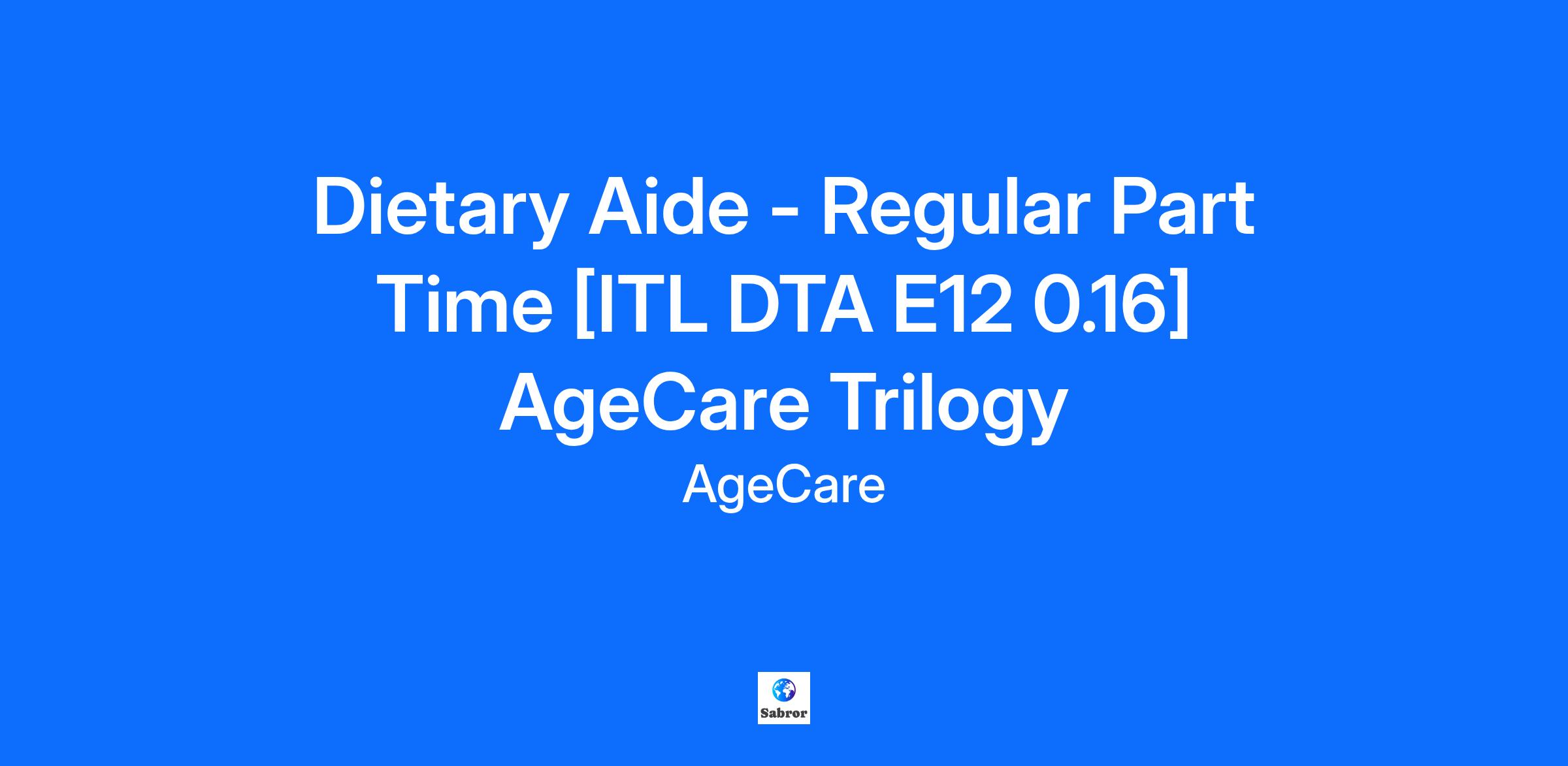 Dietary Aide - Regular Part Time [ITL DTA E12 0.16] AgeCare Trilogy