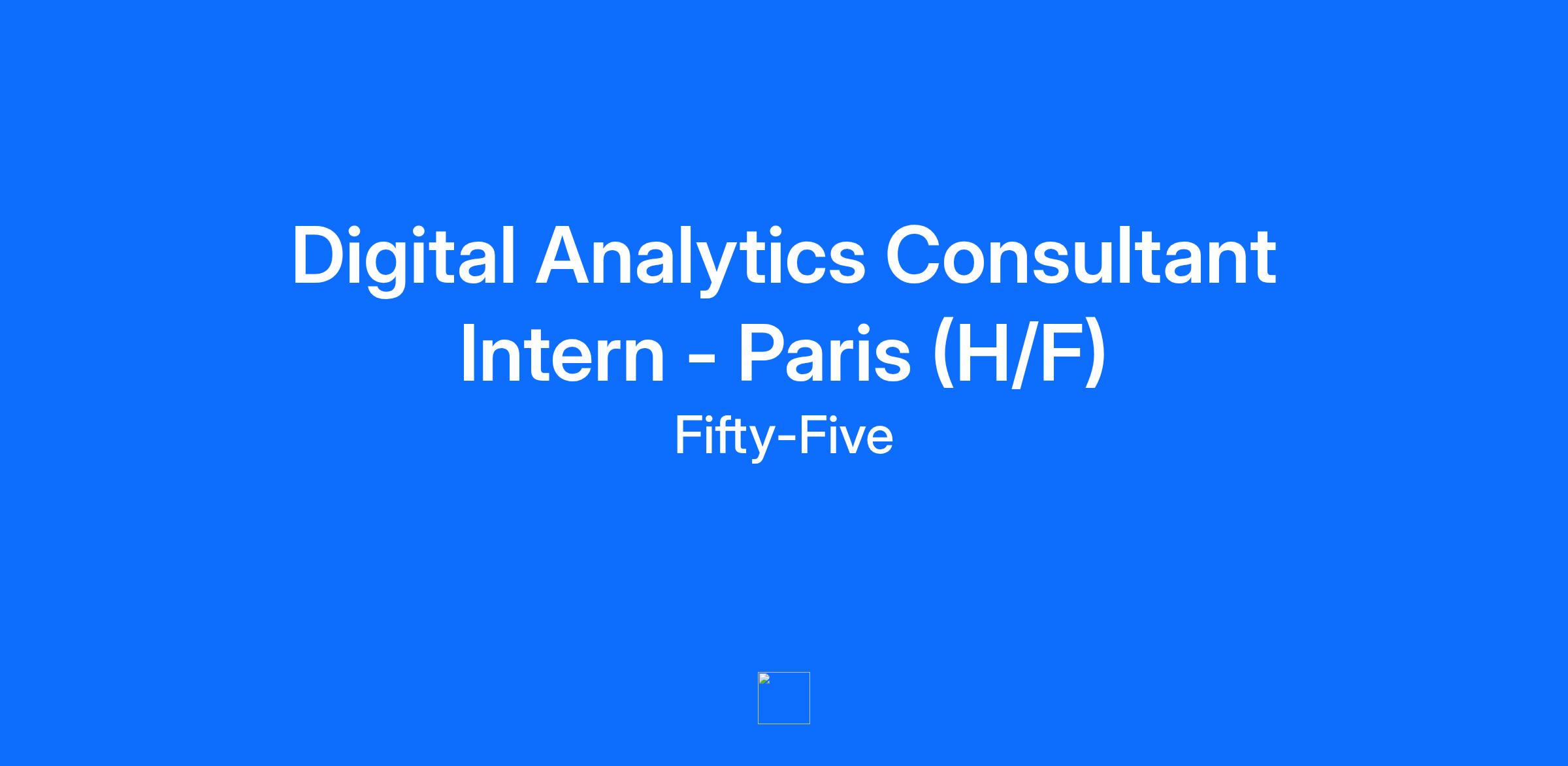 Digital Analytics Consultant Intern A propos de fifty-five fifty-five est une data-company d’un genre nouveau qui aide les marques à exploiter les données pour améliorer le marketing, les médias et l'expérience client grâce à une combinaison de services de conseil et de technologie spécialisés. En tant que pilier data et marketing du Brandtech Group, nous offrons des services qui combinent le conseil en stratégie, les services de cloud, le conseil en média et l'expérience client. fifty-five, c’est plus de 400 experts du numérique. Des digital consultants, des spécialistes du tracking et du média, des ingénieurs et des data scientists, travaillent tous en étroite collaboration pour fournir des conseils marketing de haut niveau et une assistance technique aux marques, dans tout type d'industrie, partout dans le monde. Partenaire des annonceurs de la collecte à l'activation et l'exploitation des données, nous aidons les organisations à devenir de véritables entités omnicanales maîtrisant l'efficacité de leur écosystème digital et ses synergies avec le monde physique. Basé à Paris, nous opérons sur 3 fuseaux horaires depuis nos 10 bureaux, situés à Paris, Londres, Genève, Milan, Shanghai, Hong Kong, Shenzhen, Taipei, Singapour et New York. fifty-five attache une importance particulière au bien-être de ses collaborateurs, ce qui lui a permis de figurer dans le classement Best Workplaces France en 2018. Nous croyons fermement que l'environnement de travail est un élément clé du bien-être des employés et nous avons l'intention d'offrir d'excellentes conditions de travail à nos Fifty Fivers. L'humilité, le sens de l'humour et les qualités humaines sont des valeurs communes partagées par tous ! Tes Missions En fonction de ton profil, de tes appétences et de nos opportunités de missions du moment, tu rejoindras l’une de nos équipes et leurs secteurs d’activités dédiés (Automobile, Luxe, Retail, Divertissement etc.). Intégré(e) au sein d’une équipe de consultants de toutes seniorités et en collaboration avec des experts internes, tu accompagneras nos clients sur des problématiques liées au marketing digital et participeras à des missions de Web Analyse et/ou de Mix Media digital : Collecte de données : Accompagner nos clients dans l’implémentation d’outils de web analyse & media Collecter les données selon le besoin business de nos clients Garantir la fiabilité et la qualité des données collectées Analyse des données : Analyser les parcours digitaux des utilisateurs grâce à la donnée collectée: CRO, Expérience client Être force de proposition auprès de nos clients pour répondre à leurs objectifs (ventes, génération de leads etc.) Prendre part à des missions d’attribution media afin de comprendre l'interaction des divers canaux marketing et leurs synergies Elaborer des recommandations pour nos clients Suivi des performances: Recueillir le besoin de nos clients Définir des indicateurs clés de performance et construire des tableaux de bord Assurer la performance de nos clients digitaux à travers l’analyse de ces KPIs En fonction de ton évolution et tes appétences, tu pourras également intervenir sur des missions de : - Gestion projet Participer à des réunions clients Accompagner dans l’élaboration d’un appel d’offre Piloter différents projets de mise en place d’outils Réaliser des audits sur l’activité du client Assurer le respect des jalons des différentes missions Participer à des projets d’implémentation d’outils et de process (RGPD, Privacy) Accompagner nos clients dans la migration de nouveaux outils Profil et compétences recherchés Seras-tu notre prochain(e) Digital Analytics Consultant Intern ? Oui si… Must Have Tu prépares un cursus bac +5 d’une grande école et recherches un stage de 6 mois (césure ou fin d’études). Tu maîtrises les outils Microsoft Word, Excel, Powerpoint et Google Docs Tu es doté(e) d’un fort esprit analytique et d’un esprit de synthèse Tu es polyvalent(e) et tu as une bonne capacité d’adaptation Tu as le sens de la relation client, tu fais preuve d’une excellente communication orale et écrite Tu as envie de développer des compétences à la fois business et techniques Tu es une personne motivée et énergique qui as envie d’apprendre ! Tu es bilingue français (niveau C2 - lu, parlé et écrit) et parle couramment anglais (niveau C1) Nice to Have Tu as une expérience antérieure en marketing digital, data ou dans un cabinet de conseil Tu as une forte appétence pour les technologies web & multimédia Tu as déjà travaillé sur un ou plusieurs outils de web analyse et/ou média Les petits plus chez fifty-five : 250 salariés à Paris et plus de 320 dans le monde Un environnement multiculturel avec plus de 20 nationalités différentes Des valeurs internes centrées sur l'excellence, la bienveillance et le partage ! Une semaine d’Onboarding commun à tous nos Nifties et des formations continues (et reconnues) sur l'écosystème et les technologies du digital Des missions responsabilisantes et évolutives pour tirer de cette expérience le maximum de compétences Une carte ticket restaurant MyEdenred de 10 euros par jour, remboursés à 50% La prise en charge à 50% des titres de transports (Navigo, vélo, etc.) Une importance particulière accordée à l'équilibre vie privée / vie professionnelle dans le respect du droit à la déconnexion Une politique de télétravail flexible Des locaux modernes et stimulants, à l'identité forte, proches de Saint-Lazare (salles de sport, ping-pong, baby-foot,...) Des afterworks hebdomadaires et des évènements organisés régulièrement par le CSE (sport, yoga, football, oenologie…) La possibilité de s'investir dans des projets internes tels que Data Hive (un projet "tech for good" à l'initiative de fifty-fivers, dont le but est de mettre leurs connaissances et leurs expertises 