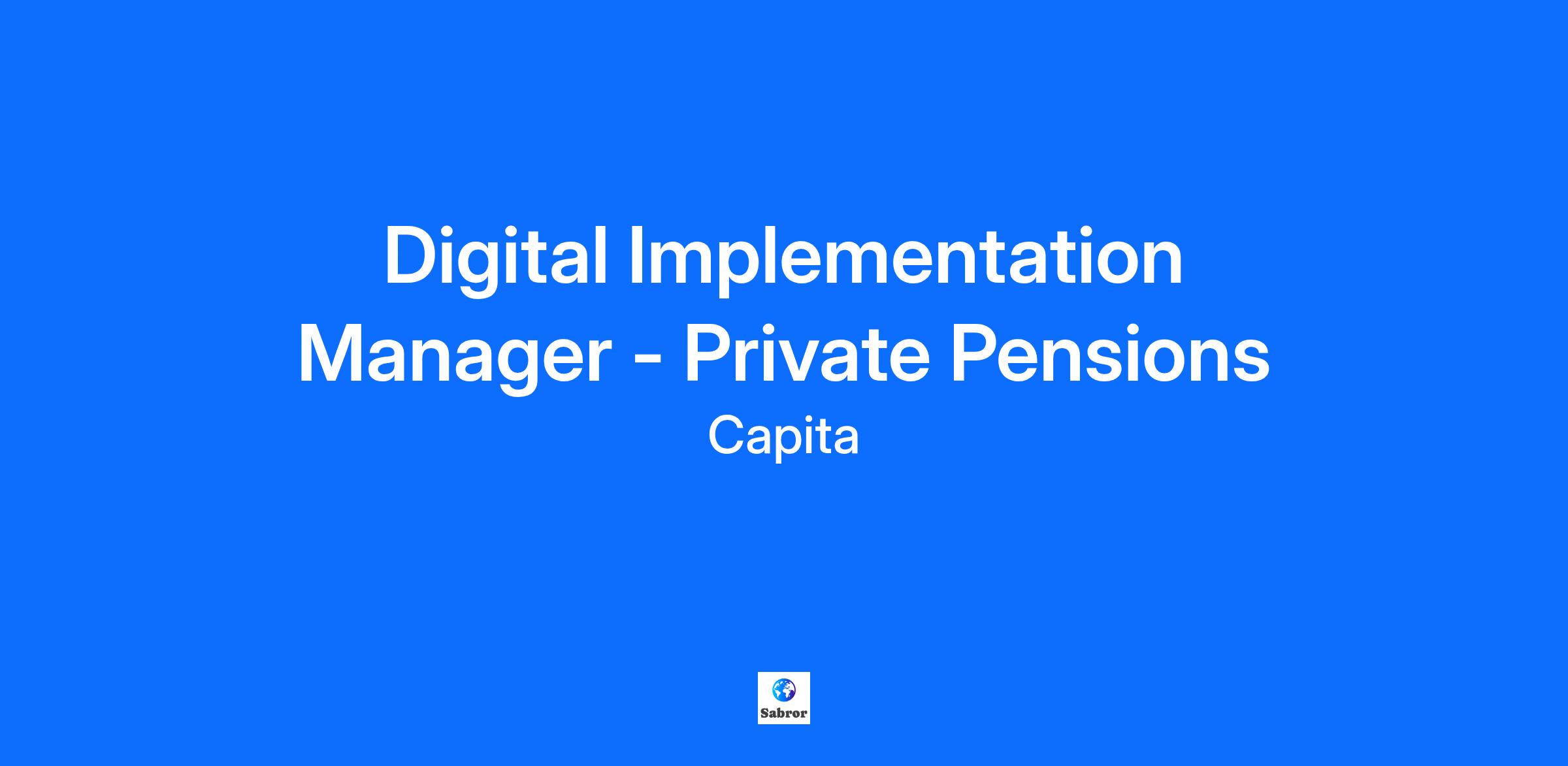 Digital Implementation Manager Home Based We are looking for a Digital Implementation Manager to be responsible for a team of Digital Implementation Specialists working on onboarding and migrating new and existing clients to our new Digital pension platform. In this client facing role you will lead in shaping and delivering digital product solutions that enhance member engagement and operational efficiency across our pensions platforms. You will work with clients to develop their online pensions presence and devise both standard and personalised sites for members, employers and through the new mobile app. You will be working closely with cross-functional teams and strategic clients to ensure our digital offerings meet evolving market needs and regulatory standards. Job title: Digital Implementation Manager - Private Pensions Job Description: Key Responsibilities Lead the implementation of digital tools and platforms across pension schemes, ensuring alignment with client requirements and internal standards. Team management of a growing team including recruitment, personal development, coaching and mentoring Client management including virtual and face to face meetings, handling client queries, presenting demonstrations and Manage digital content workflows, including CMS configuration, template development, and journey mapping for both members and employers. Collaborate with UX, CX, and technical teams to ensure user-centred design and accessibility across digital touchpoints. Coordinate sprint planning and delivery with development teams, tracking progress and resolving blockers. Own the digital delivery roadmap for assigned schemes, ensuring milestones are met and risks are mitigated. Support the development and execution of digital strategies, including automated communications, digital reporting, and engagement tools. Act as a key liaison between operations, technology, and client stakeholders, ensuring clear communication and shared understanding of deliverables. Contribute to service assessments, investment cases, and digital strategy documentation. Provide training, guidance, and support to internal teams on digital tools and processes Essential Skills and Experience: Previous experience of managing digital teams in pensions, financial services, or regulated environments. Experience of implementation and/or migration projects for digital platforms/products Presentation skills to a wide range of stakeholders both internally and externally. Excellent stakeholder management and communication skills. Experience with digital platforms, member portals, and mobile applications. Ability to lead cross-functional teams and manage competing priorities Excellent communication and collaboration skills, with the ability to influence across technical and non-technical teams Desirable: ADO, Figma and Miro systems knowledge would be beneficial Knowledge of DB pension scheme administration and member lifecycle journeys to understand member’s online requirements and how to drive engagement Exposure to AI-driven product development and automation tools About Capita Pension Solutions At Capita Pension Solutions (CPS) we continue to grow and evolve our Strategy & Product function. We are at another exciting point in that evolution, defining and executing CPS’s strategic goals as well as developing the next generation of market leading Products and Services. We have ambitious objectives and plans for 2026 and beyond. What’s in it for you? 23 days’ holiday (rising to 27) with the opportunity to buy extra leave Company matched pension, life assurance, a cycle2work scheme, 15 weeks’ fully paid maternity, adoption and shared parental leave, paternity pay of two weeks…and plenty more Voluntary benefits designed to suit your lifestyle – from discounts on retail and socialising, to health & wellbeing, travel and technology The opportunity to take a paid day out of the office, volunteering for our charity partners or a cause of your choice Access to our Employee Network Groups, which represent every strand of diversity and allow colleagues to connect and learn from each other on an open, inclusive platform What we hope you’ll do next: Choose ‘Apply now’ to fill out our short application, so that we can find out more about you. We’re an equal opportunity and Disability Confident employer, which means we recruit and develop people based on their merit and passion. We’re committed to providing an inclusive, barrier-free recruitment process and working environment for everyone. If you need the job description or application form in an alternative format (such as large print or audio), or if you’d like to discuss other changes or support you might need going forward, please email Iqbal at reasonableadjustments@capita.com or call 07784 237318 and we’ll get back to you. For more information about equal opportunities and process adjustments, please visit the Capita Careers website. Access to Work can help candidates with a physical or mental health condition or disability to get support in the hiring process, including communication support at interviews such as a British Sign Language interpreter. If you require this support you can apply for this support at https://www.gov.uk/guidance/apply-for-communication-support-at-a-job-interview-if-you-have-a-disability-or-health-condition-access-to-work . Location: , United Kingdom Time Type: Full time Contract Type: Permanent Capita is a consulting, transformation and digital services business. We deliver innovative solutions and simplify the connections between businesses and customers, governments and citizens. We're driven by our purpose: to create better outcomes – for our employees, clients and customers, suppliers and partners, investors, and society. We're committed to being a responsible business – in how we operate, serve society, respect our people and the environment, and deliver attractive returns to our investors. Every day we help m