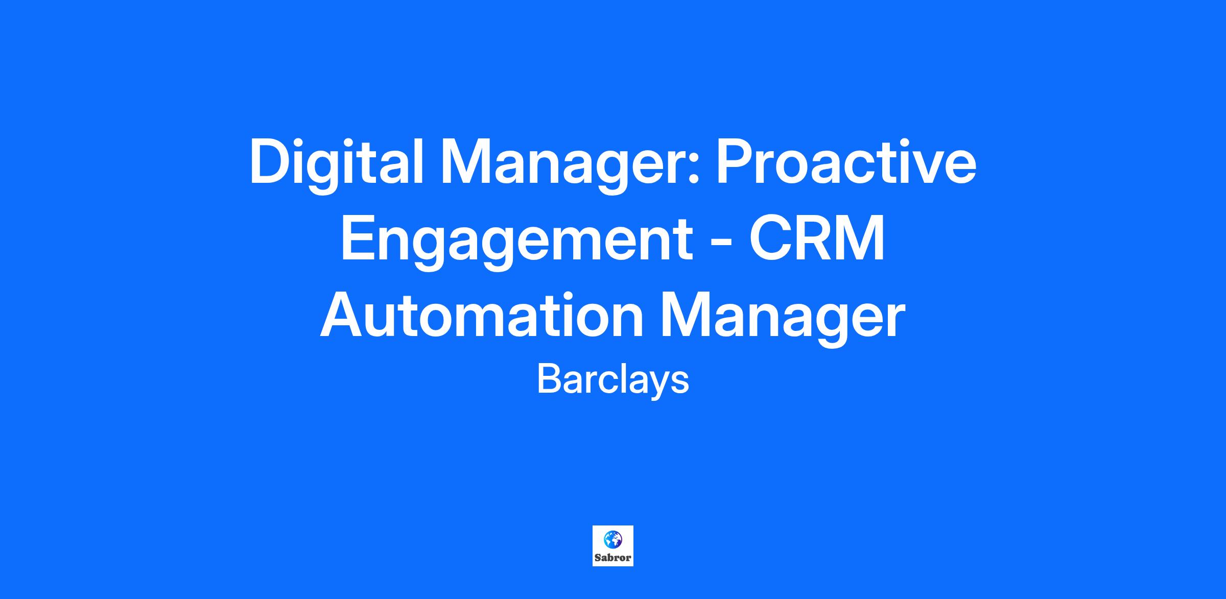 Job Description Purpose of the role To drive the success of the commercial banking segment through market analysis, product development, sales and relationship management, risk management, and performance. Accountabilities Execution of market research to understand the competitive landscape, identify market trends and opportunities, and develop strategies to capture market share within the commercial banking segment, taking into consideration industry, size, and growth stage. Development of appropriate pricing models for different products and services, ensuring profitability while remaining competitive in the market. Development, implementation and management of innovative financial solutions, services and products aligned to the banks objectives and are tailored to the commercial banking segment, including loan products, cash management solutions, and trade finance services. Identification and forging of strategic partnerships with other financial institutions, technology providers, or industry experts to expand product offerings and reach new client segments. Management of key stakeholder relationships within target companies to understand their needs and recommend appropriate solutions. Development and implementation of sales strategies including the establishment of sales targets, identification of sales channels to reach potential clients and objectives for loan terms to support the negotiation process and development of service agreements. Monitoring of key leading and lagging metrics such as new client acquisition, loan volume, revenue generation, and market share to assess the performance of the commercial banking segment. Funnel and journey optimisation are key to delivery of service and commercial performance. Assistant Vice President Expectations To advise and influence decision making, contribute to policy development and take responsibility for operational effectiveness. Collaborate closely with other functions/ business divisions. Lead a team performing complex tasks, using well developed professional knowledge and skills to deliver on work that impacts the whole business function. Set objectives and coach employees in pursuit of those objectives, appraisal of performance relative to objectives and determination of reward outcomes If the position has leadership responsibilities, People Leaders are expected to demonstrate a clear set of leadership behaviours to create an environment for colleagues to thrive and deliver to a consistently excellent standard. The four LEAD behaviours are: L – Listen and be authentic, E – Energise and inspire, A – Align across the enterprise, D – Develop others. OR for an individual contributor, they will lead collaborative assignments and guide team members through structured assignments, identify the need for the inclusion of other areas of specialisation to complete assignments. They will identify new directions for assignments and/ or projects, identifying a combination of cross functional methodologies or practices to meet required outcomes. Consult on complex issues; providing advice to People Leaders to support the resolution of escalated issues. Identify ways to mitigate risk and developing new policies/procedures in support of the control and governance agenda. Take ownership for managing risk and strengthening controls in relation to the work done. Perform work that is closely related to that of other areas, which requires understanding of how areas coordinate and contribute to the achievement of the objectives of the organisation sub-function. Collaborate with other areas of work, for business aligned support areas to keep up to speed with business activity and the business strategy. Engage in complex analysis of data from multiple sources of information, internal and external sources such as procedures and practises (in other areas, teams, companies, etc).to solve problems creatively and effectively. Communicate complex information. 'Complex' information could include sensitive information or information that is difficult to communicate because of its content or its audience. Influence or convince stakeholders to achieve outcomes. All colleagues will be expected to demonstrate the Barclays Values of Respect, Integrity, Service, Excellence and Stewardship – our moral compass, helping us do what we believe is right. They will also be expected to demonstrate the Barclays Mindset – to Empower, Challenge and Drive – the operating manual for how we behave. As the Digital Manager: Proactive Engagement - CRM Automation Manager, you will be responsible for shaping and executing the strategic development of customer engagement through data-driven CRM (Customer Relationship Management) automation, lifecycle management, and personalisation initiatives. Acting as a strategic advisor across Marketing, Lifecycle, Product, Martech, and Data functions, you will ensure that customer journeys and communications are effectively designed, prioritised, and activated across all channels. You will leverage customer data and decisioning capabilities to deliver timely, relevant, and compliant customer experiences. Through strong cross-functional collaboration, you will drive the adoption of CRM and automation best practices, support governance standards, and promote continuous improvement to enhance both business performance and customer engagement. To be successful as the Digital Manager: Proactive Engagement - CRM Automation Manager, you should have experience with Background in CRM strategy, customer lifecycle management, or personalisation strategy. Experience consulting or partnering with Marketing, CLCM (Customer Lifecycle Management), or Product teams to define customer engagement plans. Proven ability to translate business needs into actionable CRM or decisioning use cases. Understanding of multi-channel customer journeys (email, SMS, push, app, web, and paid media). Good stakeholder management and influencing skills, especially across 