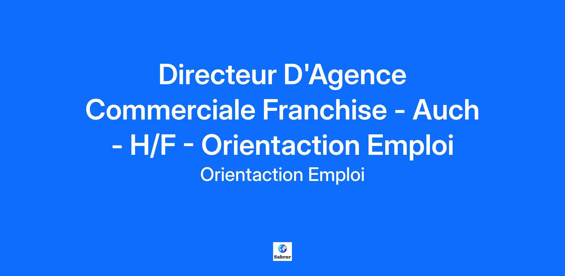 Directeur D'Agence Commerciale Franchise - Auch - H/F - Orientaction Emploi